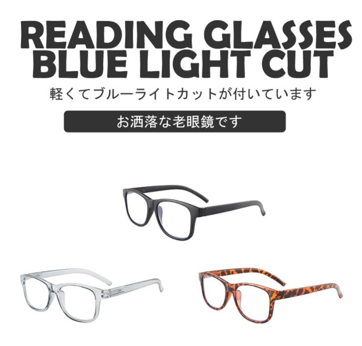 お洒落で軽い老眼鏡。 人気のウェリントンデザインです。