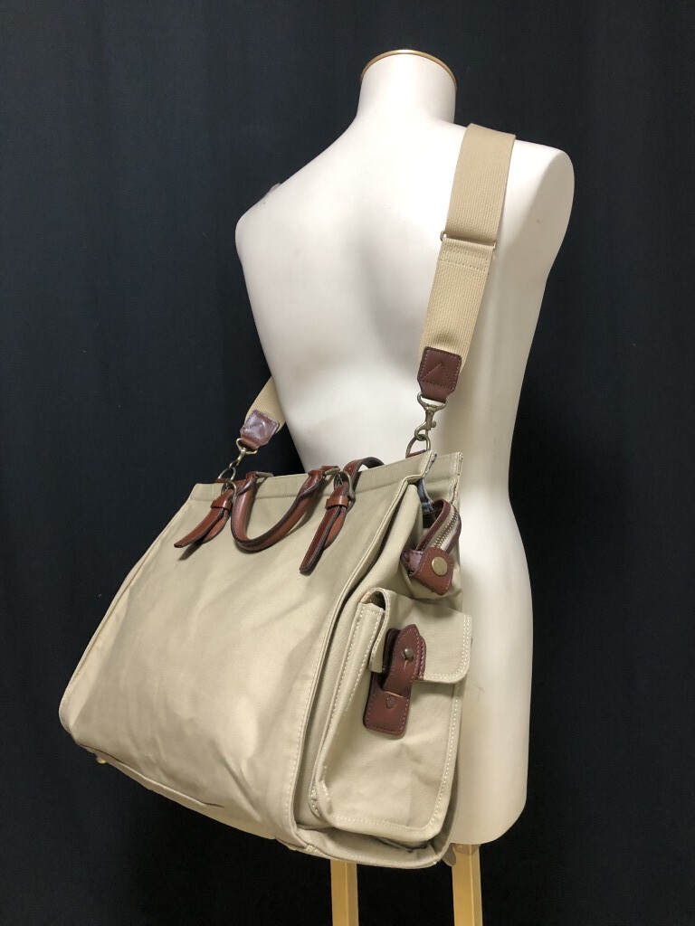 ◆IKETEI SILVER LAKE CLUB シルバーレイククラブ 帆布 大型ショルダーバッグ シルバー布裏地 日本製 斜めがけ 旅行 2way B4