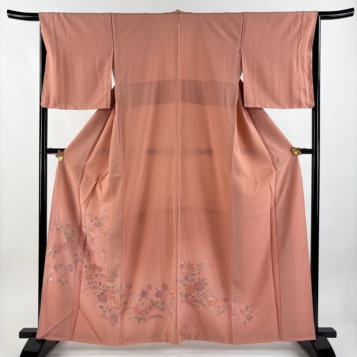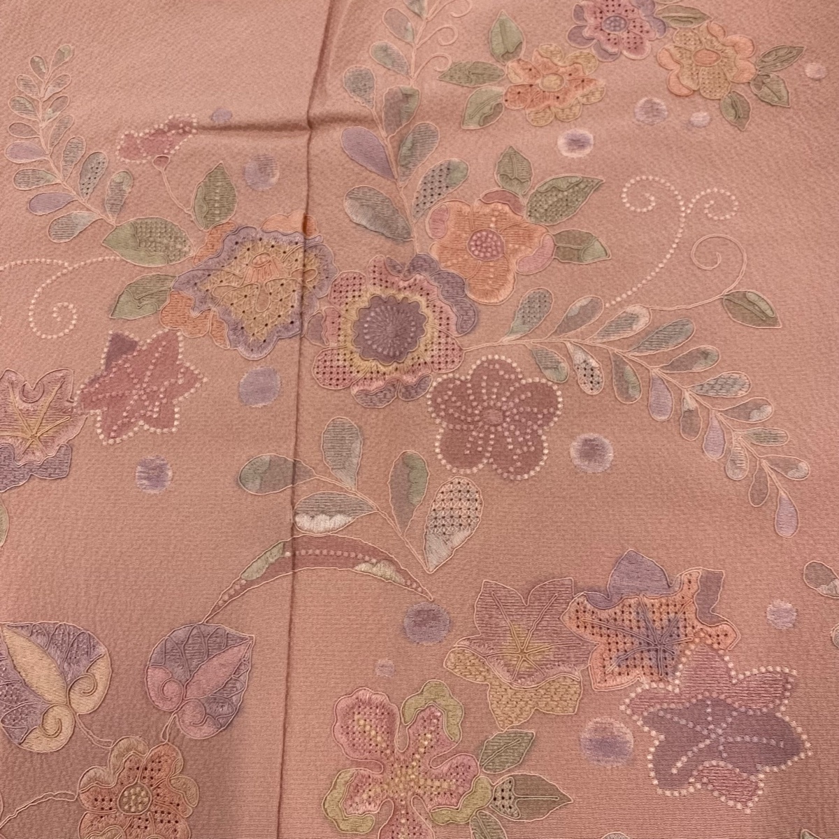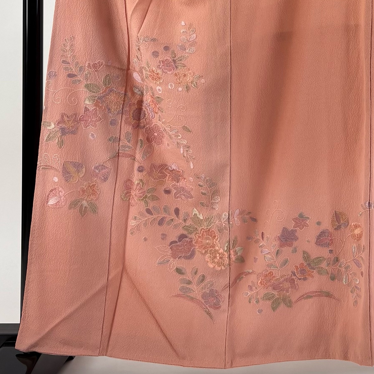| 付下げ 秀品 草花 刺繍 ぼかし ピンク 袷 身丈161 裄丈65 M 正絹 【中古】 |