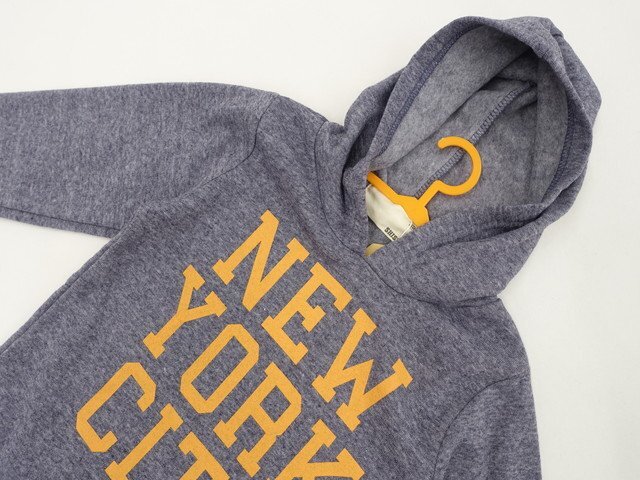 長袖 裏起毛プルオーバーパーカー 110 グレー系杢地 オレンジ 英字プリント