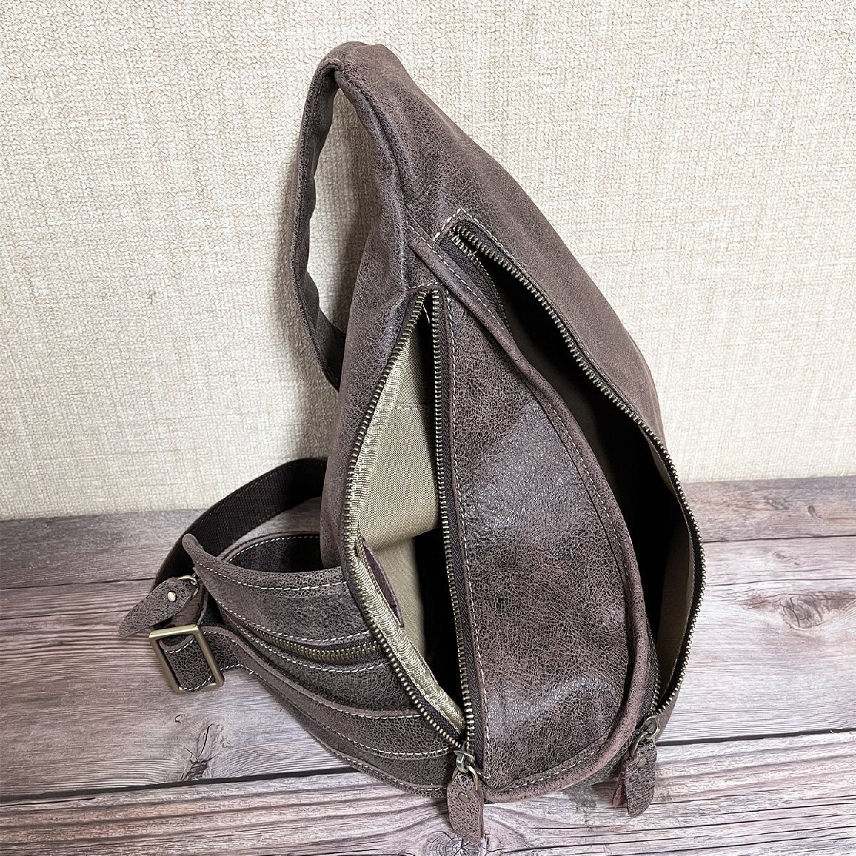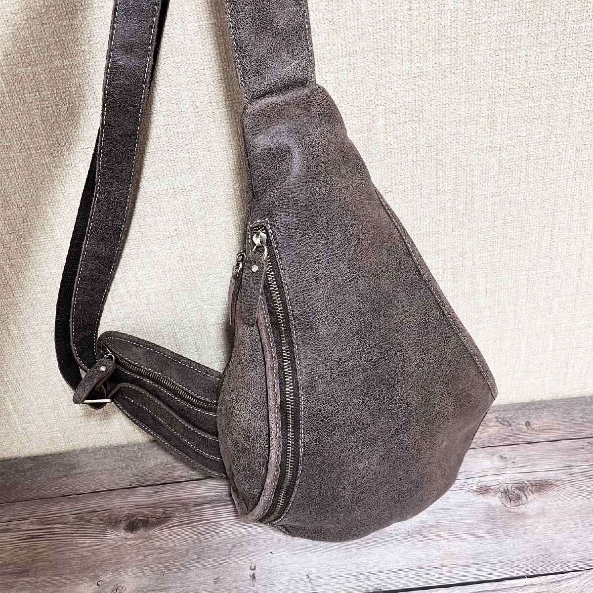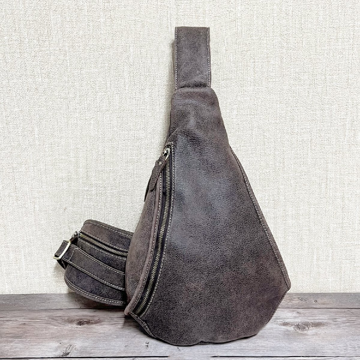 大人に似合うシックなカラーでスマートなフォルムがあらゆる装いに合わせやすい。ベルトのクッションのために、肩の負担が少なくなります。メインポケットは使い勝手の良いファスナータイプになっており、スマホやタバコと丁度いい収納サイズで、普段使いにおすすめです。後ろにもファスナー付きのポケットを装備し、鍵や、交通系カードなどを入れておくとすぐに取り出すことができます。また、本体と同じ本革素材の引手もポイントで、細部まで拘っており見た目にも存在感を放ち、華やかな佇まいに仕上げた。ショルダーストラップの長さは金具で調節可能。