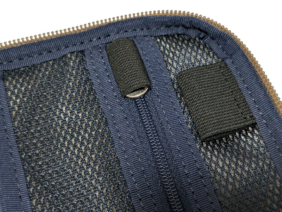 仕様:前面ポケット1、ポケット3、スリッドポケット1、カード3、ファスナーポケット1、ペンホルダー1
