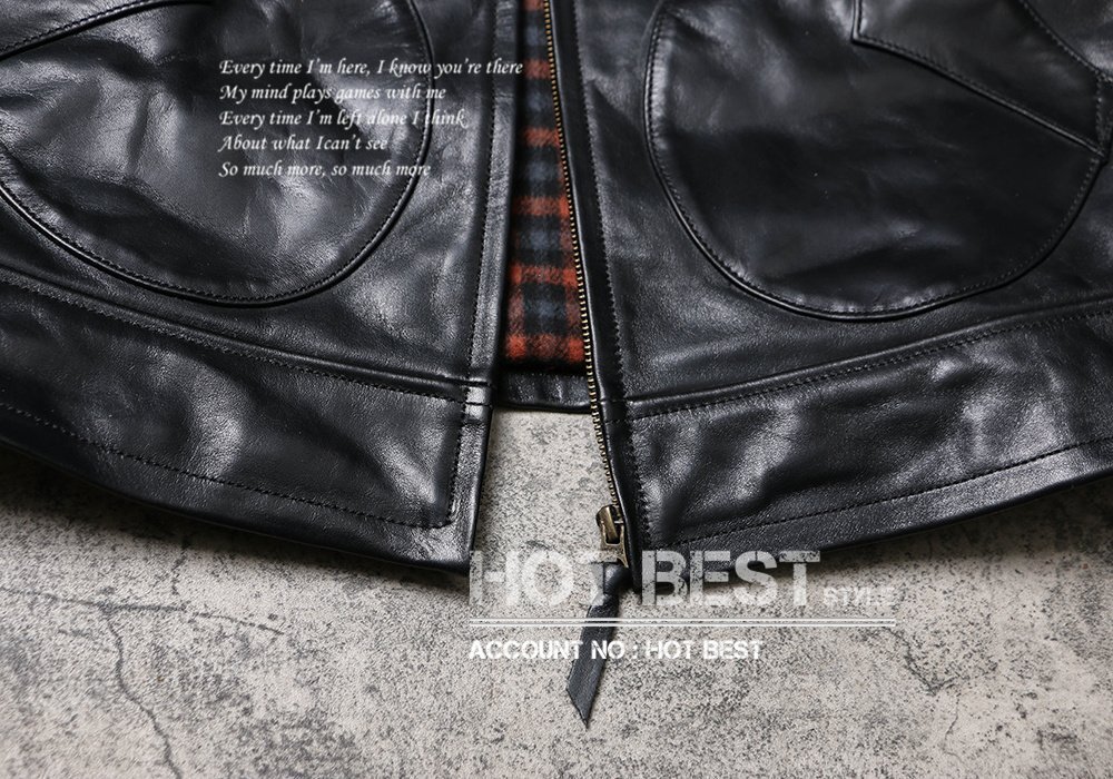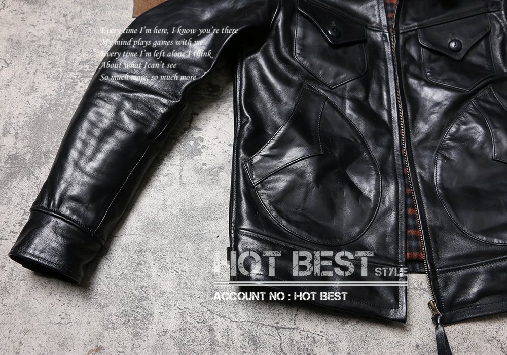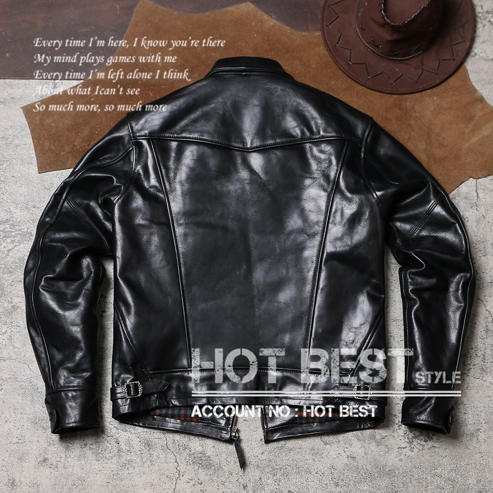 1.2mm 黒芯ホースハイド 復刻40's アビエイタースタイル レザージャケット メンズ 革ジャン 植物鞣し オイルワックスレザー 馬革 Y1584/XL