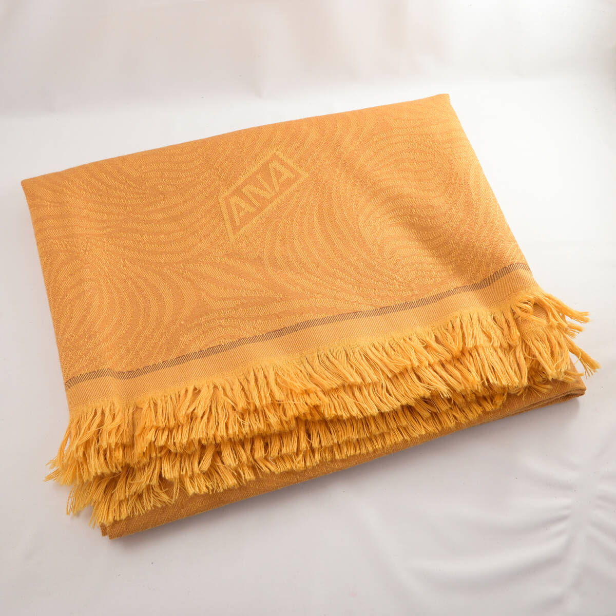 refle【レトロ】 ANA 膝掛け ブランケット オレンジ 全日空 年代物 難あり 保管臭あり 汚れあり [①]