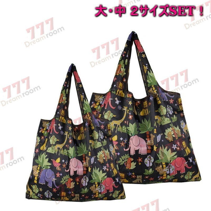 大・中 2サイズset デザイン ショッピングバッグ【F-220-30】 トートバッグ エコバッグ コンビニ袋 折りたたみ