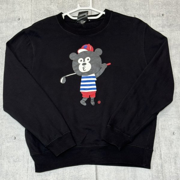 BEAMS T ゴルフ ベアー 両面プリント スウェットトレーナー ビームスT  クルーネック ビッグロゴ ブラック パイル裏地 デカロゴ 早6078