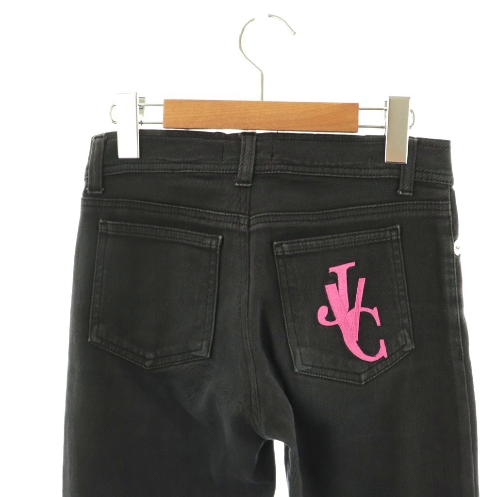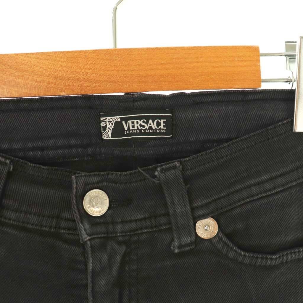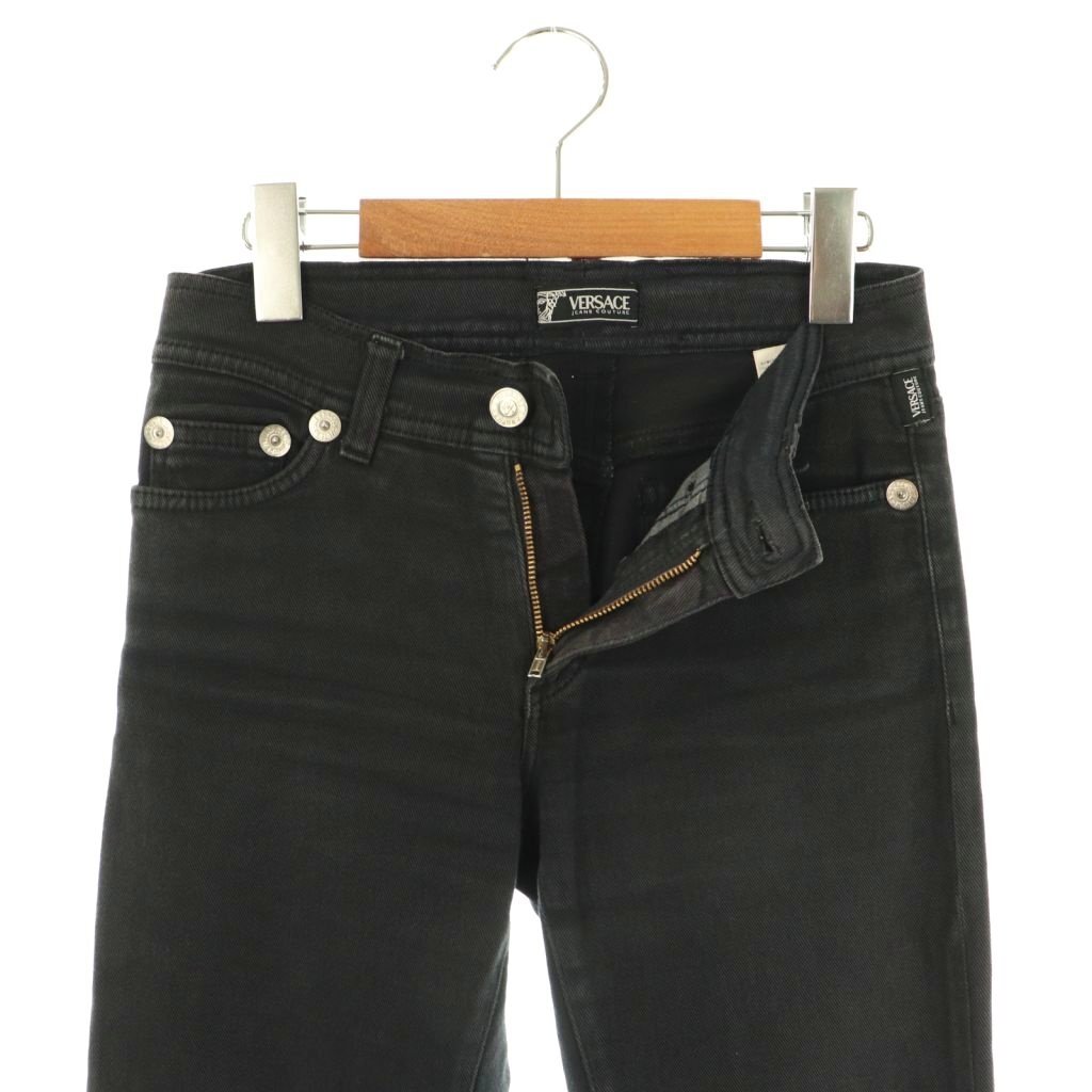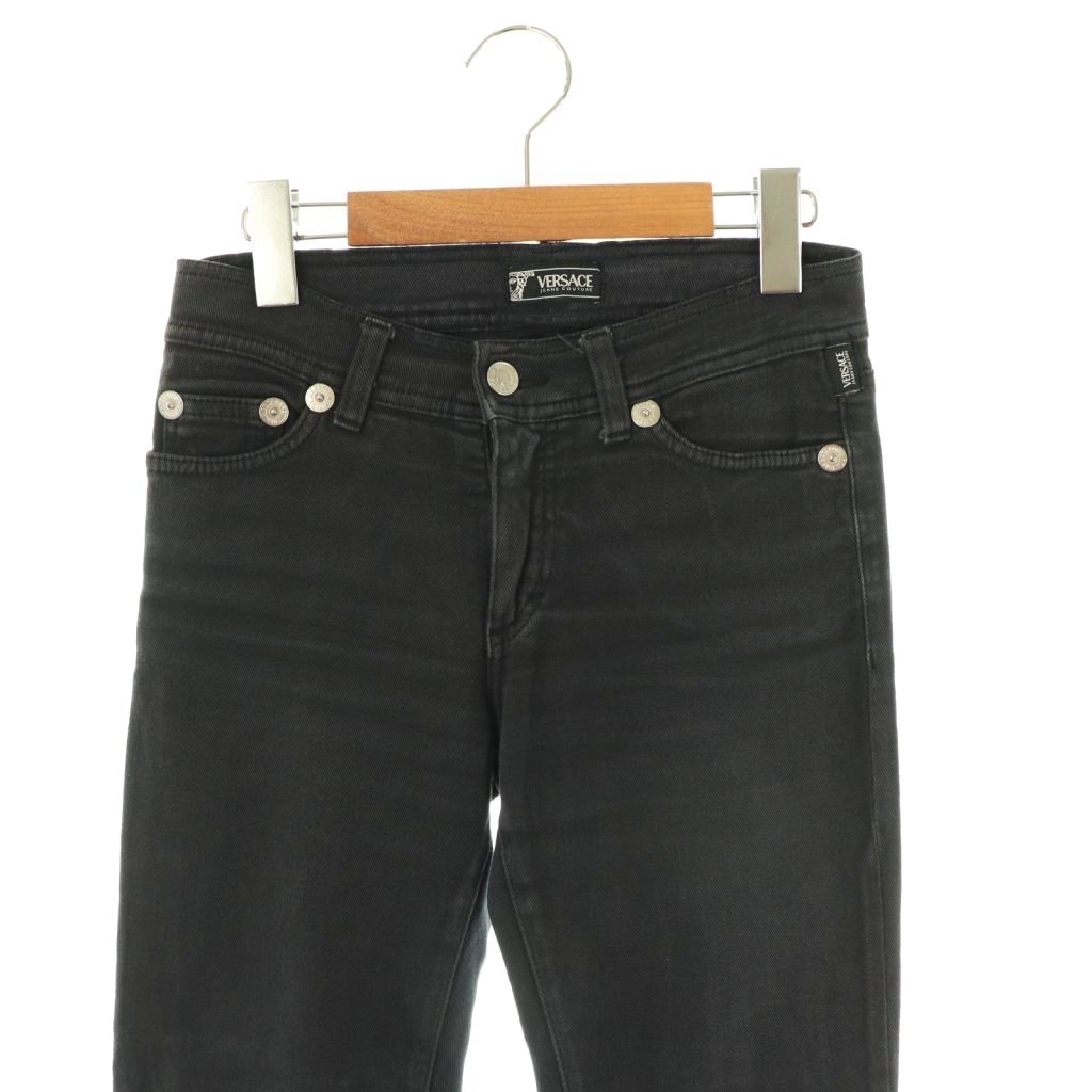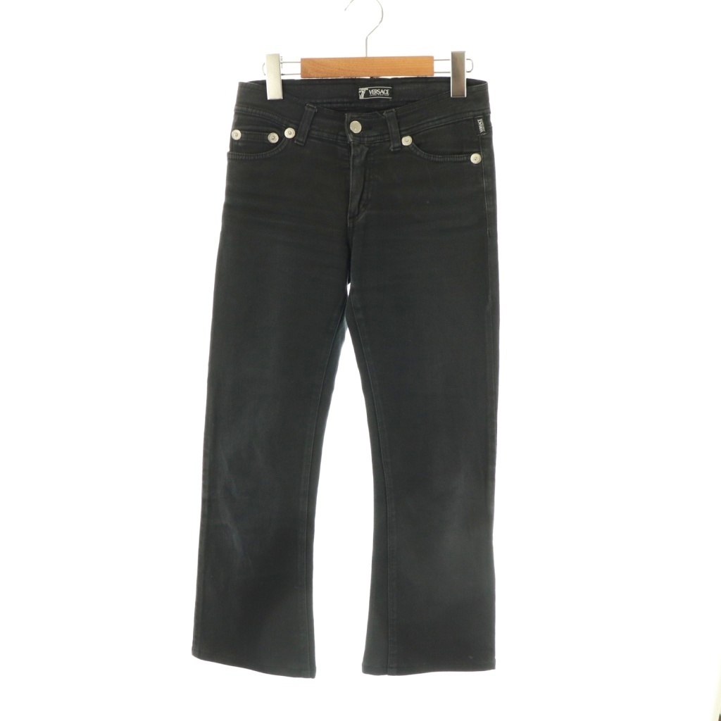 ヴェルサーチ ヴェルサーチェ VERSACE パンツ デニム バックポケット刺繍ロゴ フレア 26 40 ブラック /ES ■GY53 レディース