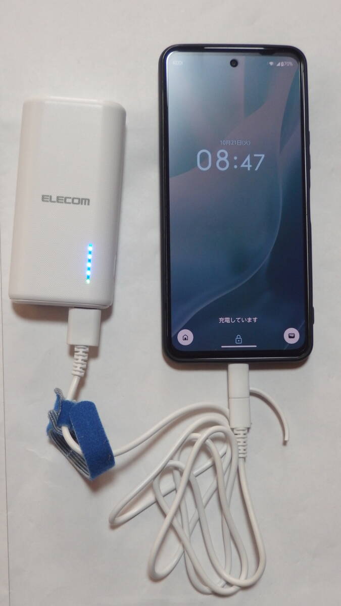 ・こちらの商品は、ELECOM  合計13W出力 USB-C入力 USB-A出力 モバイルバッテリー 6700mAh ホワイト DE-C23L-6700WH 動作品 です。