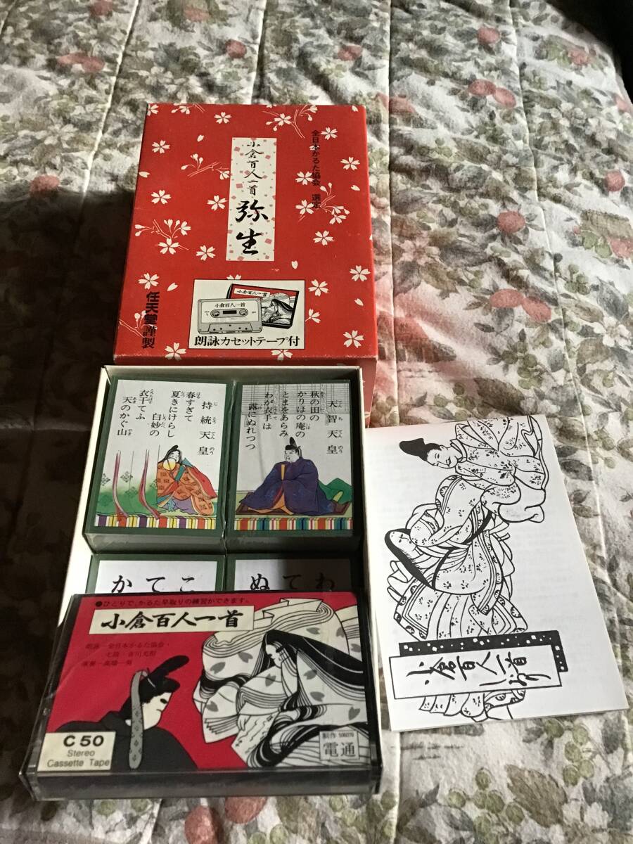 未使用 任天堂謹製 小倉百人一首 弥生 全日本かるた協会選定 百人一首 朗詠 カセットテープ 付 かるた ゲーム 遊び カードゲーム