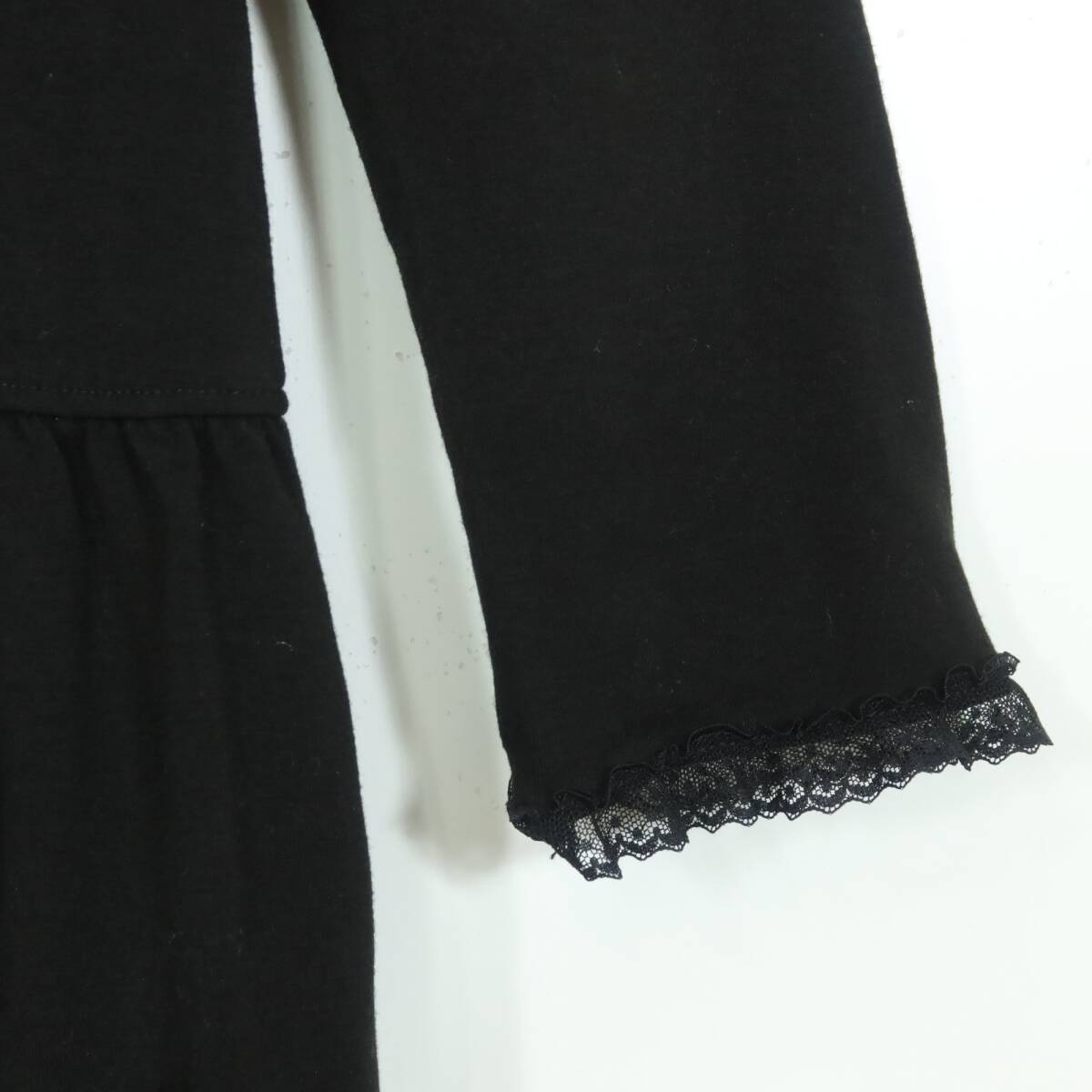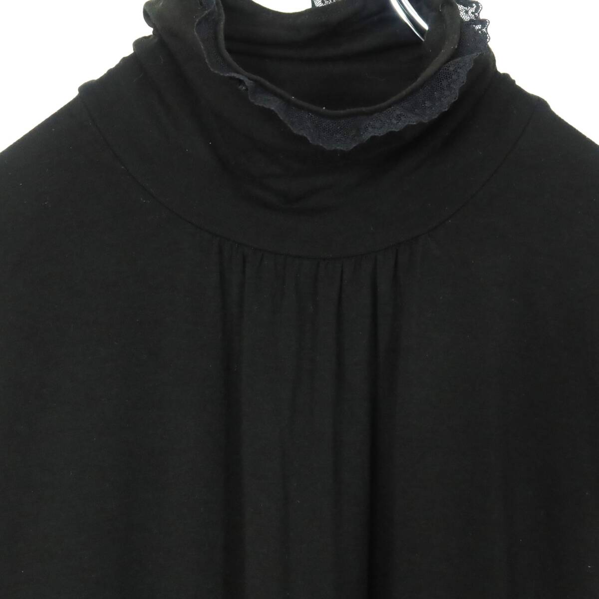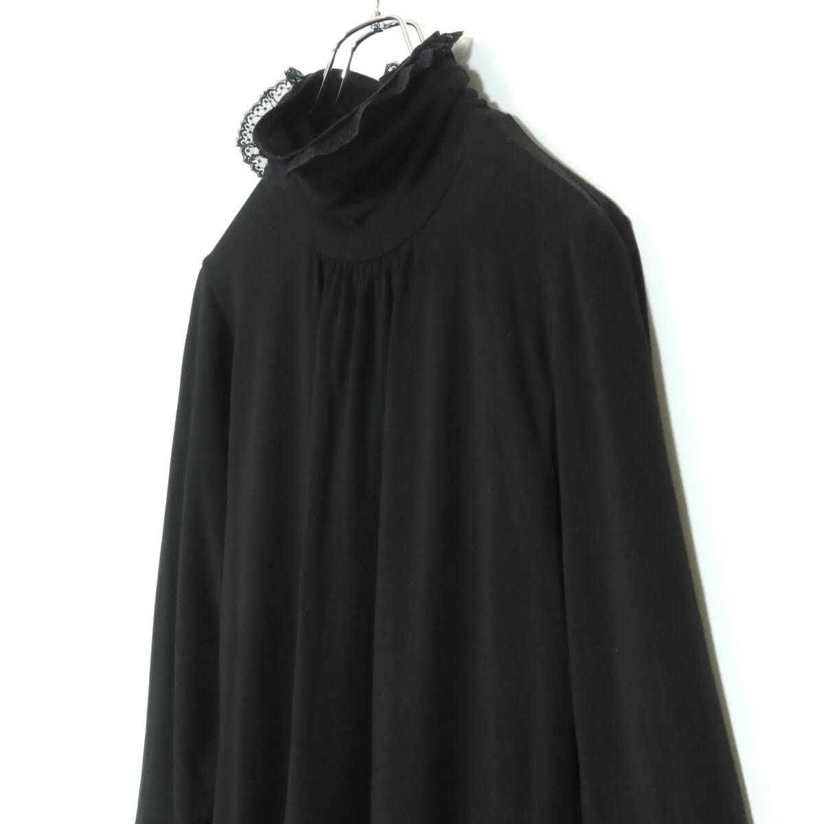 | 商品説明 | 【実寸約】肩幅35袖丈59バスト94着丈83.5(cm) 【サイズ表記】 なし。実寸をご参照くださいませ。 【素材】 綿100% 【状態】普通の使用感のあるお品物 【デザイン】ブラック系 カットソー素材のハイネックワンピースです。 ネックや袖口ドットチュールレース付き。 裾には段々フリルも♪ 薄手/無地 |