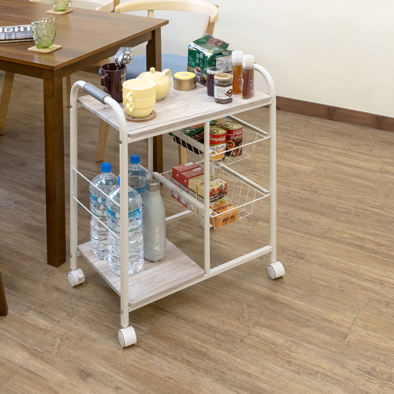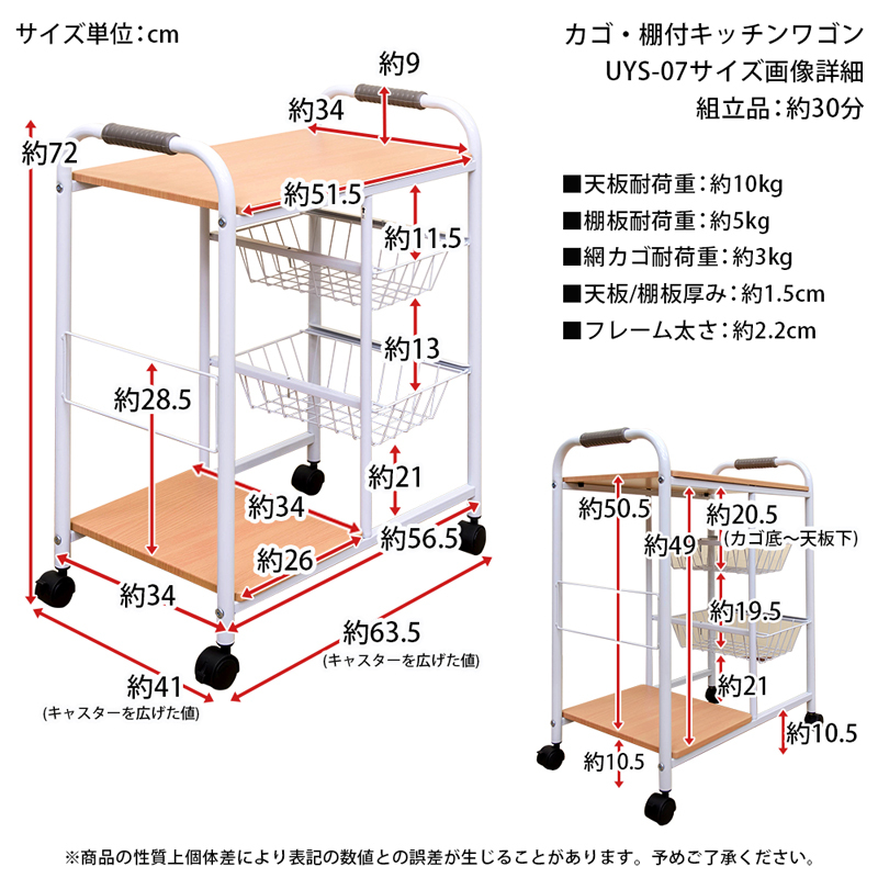| 耐荷重 | 天板約10kg 棚板約5kg 網カゴ各約3kg |
