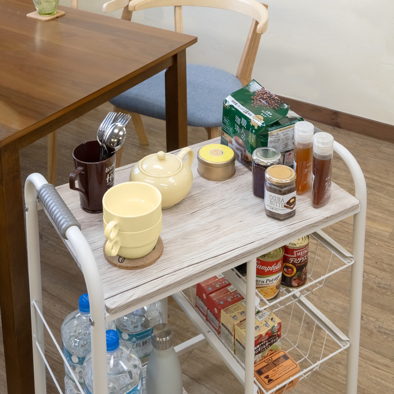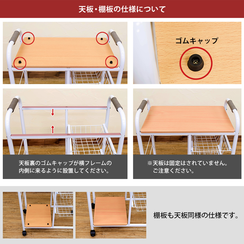 | 材質 | 天板:合成樹脂化粧繊維板 フレーム、網カゴ:スチール(エポキシ粉体塗装) |