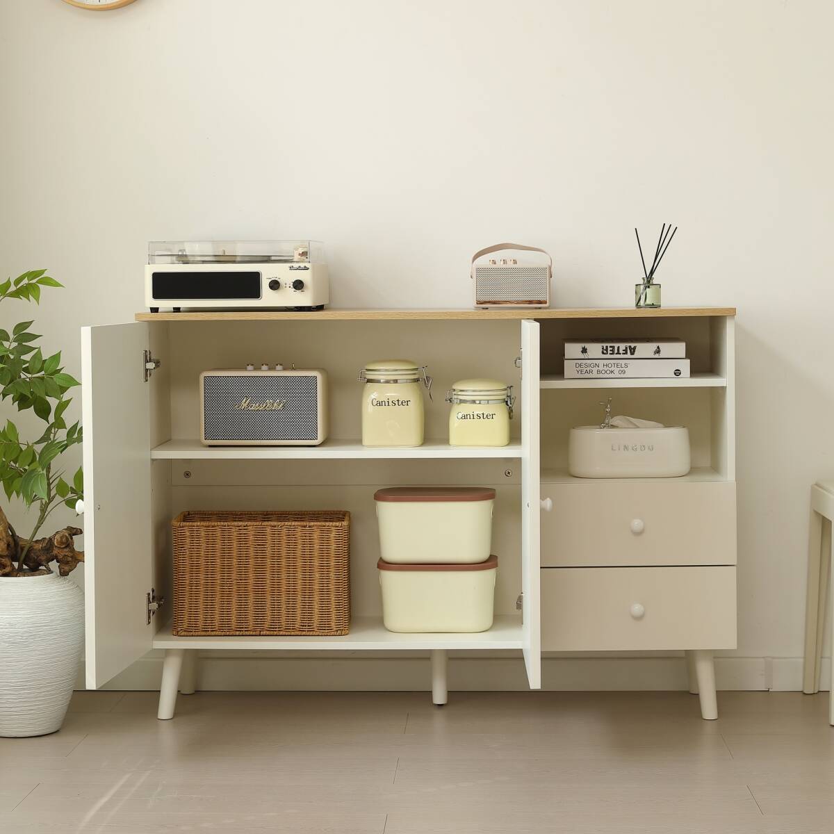 • 使いやすさとおしゃれを両立するサイドボード,隠したい物を収納、上品な外観を崩しません、オーペンスペースにはディスプレイしたい物あるいはよく使う物の置き場としても便利。コンパクトながらたっぷり収納でき、スペースを最大限に利用できます。