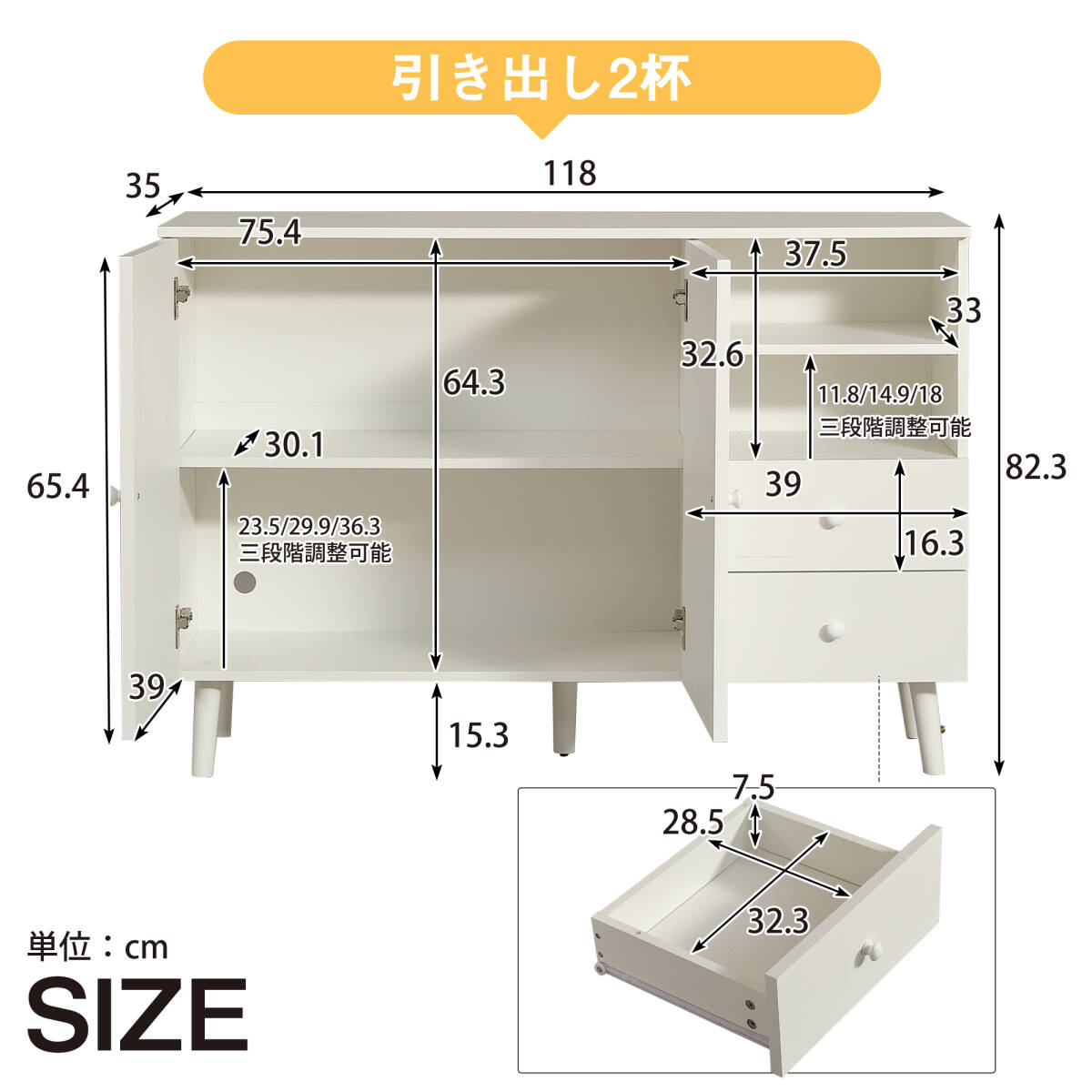 キャビネット サイドボード チェスト 収納棚 リビング収納 35cm×118cm コンパクトサイドボード 引き出し リビングボード 洋服