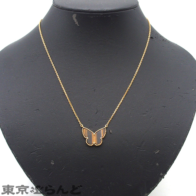 101827287 ヴァンクリーフ&アーペル ラッキー アルハンブラ パピヨン ネックレス VCARD98500 K18YG タイガーズアイ メーカー仕上済