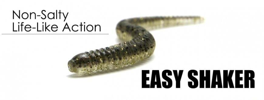 リングボディ+ノンソルティマテリアルの組み合わせにより、ジグヘッドリグのスイミング時、あるいはダウンショットリグでボトムから浮かせた状態で誘った時など、絶妙な姿勢に加えて、トリッキーなダートやもだえるような艶めかしいアクションがその名のとおり“イージー”に演出可能となっています。
