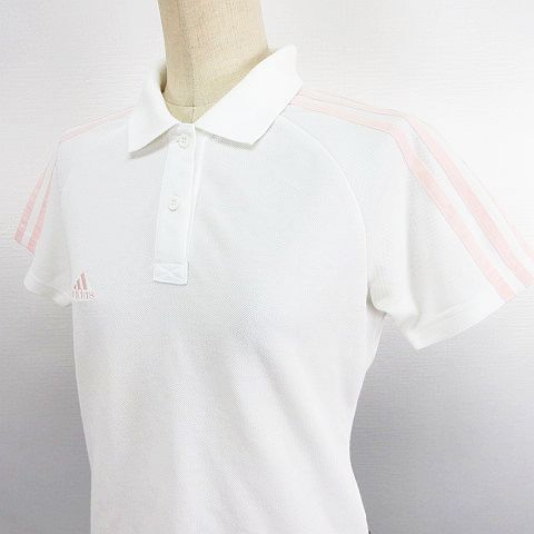 アディダス adidas ポロシャツ 半袖 ライン ロゴ M ホワイト×ピンク スポーツウェア ※EKM レディース