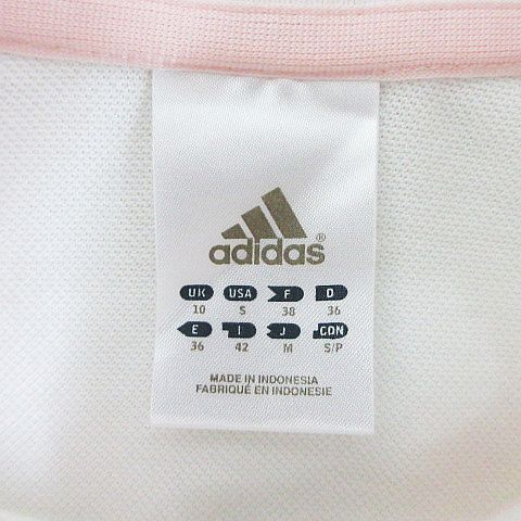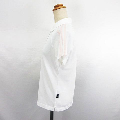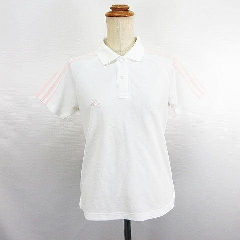 アディダス adidas ポロシャツ 半袖 ライン ロゴ M ホワイト×ピンク スポーツウェア ※EKM レディース
