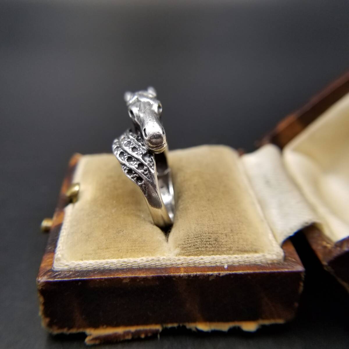 馬の顔 ホースヘッド 925 シルバー ヴィンテージ アニマル リング 銀 指輪 立体彫刻 存在感 モチーフジュエリー Y25-B