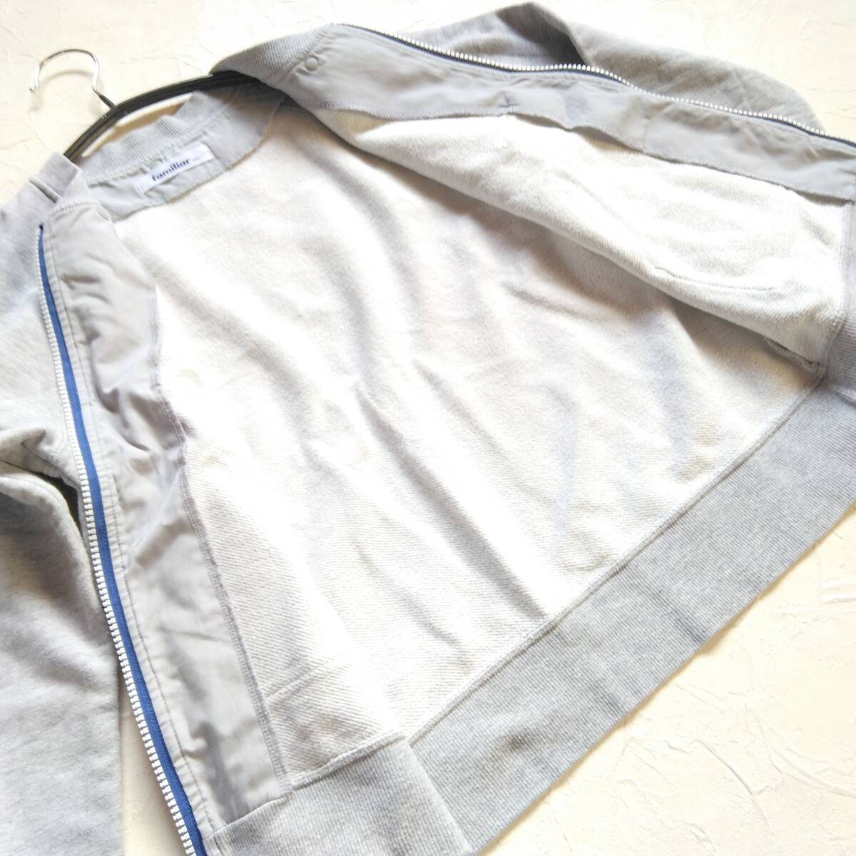 * familiar ファミリア * トレーナー生地のスウェットブルゾンです。(* ´ ∇ ` * ) ブルーとネイビーのラインがおしゃれです♪ 洗濯表示ラベル表面の印刷が薄くなってしまい読めません。 (本体は綿100%素材だったと思います。お袖口はポリウレタン混紡かと…) 目立つ汚れはありませんが、全体的に細かなピリングが多少あるなど USED感がございます。 ◇ およその平置きサイズ 身幅:45cm 着丈:50cm ゆき丈:72cm ☆ コーデに使用した他アイテム・アクセサリー類は付属しません…☆ *^^* ☆ 個人保管品ですので小さな見落としの際にはご容赦下さい。 「そんなの、全然いいさ♪」というおおらかな方のみ、ご入札をお願い致します…☆ 。。。。。。。。。。。。。。。。。。。。。。。。。。。。。。。。。。。。。。。。。。。。。。。。。。。。。。 ★ その他、洋服・クツ・雑貨 など よろず出品中。 ほとんどのお品は、同梱可能です♪ どうぞお越しくださいませ…☆
