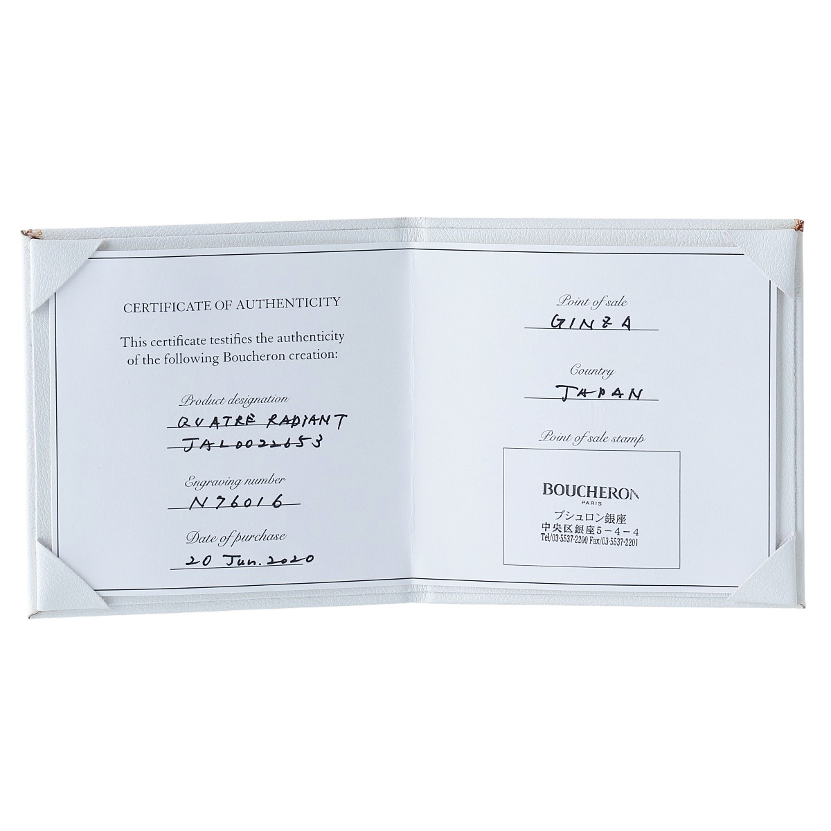 | 【ブランド名】ブシュロン BOUCHERON 【商品名】キャトル ラディアント エタニティ フルサークル リング ウェディング マリッジ 指輪 【型番】JAL00226 【定価】907,500円 【素材】Au750 K18 WG ホワイトゴールド 【サイズ】53 13号 【リング幅】3.4mm 【リング厚み】1.5mm 【重量】3.3g 【宝石】ダイヤモンド フルエタニティ フルサークル 【付属品】保証書(2020年6月ブシュロン銀座) 箱 【管理番号】1709WT834CDG23836 【商品状態】ブシュロンのキャトルラディアントリングです。新品仕上げ済のためとても綺麗な状態ですが、取り切れない細かいキズはご了承ください。また、リング内側に磨き作業による変色があります。写真でご確認ください。 【注意書き】モニターの発色具合により異なって見える事があります。 | ||||||||