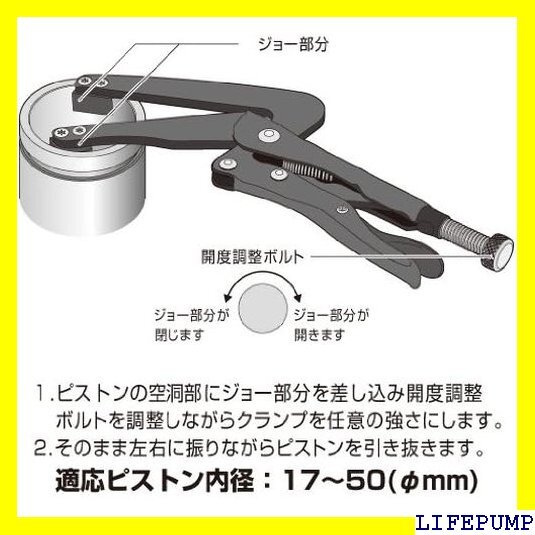 ■ハンドル部がバイスプライヤーのようにロック機構付で、ピストンを掴んだ状態を保持することができます。