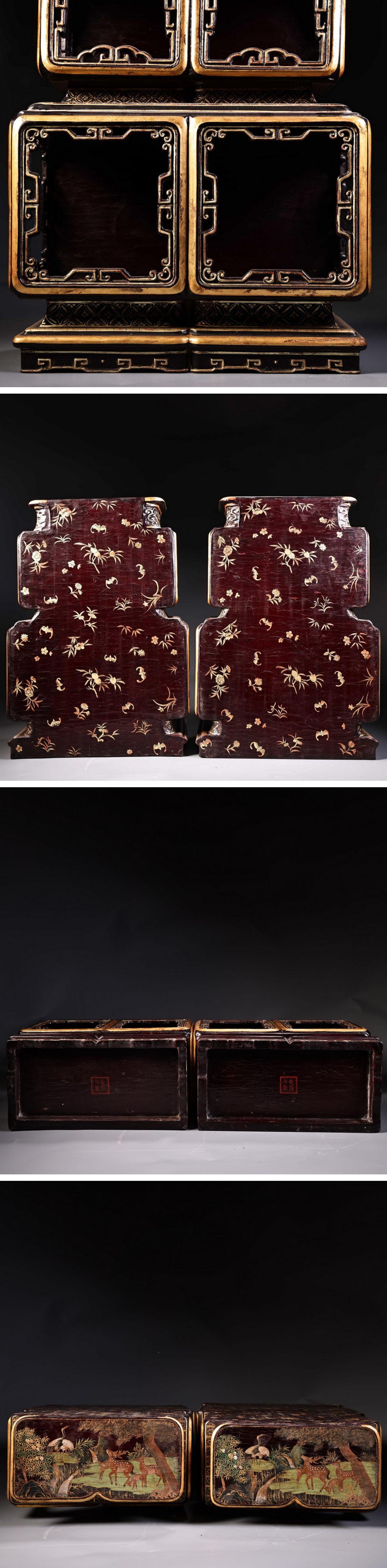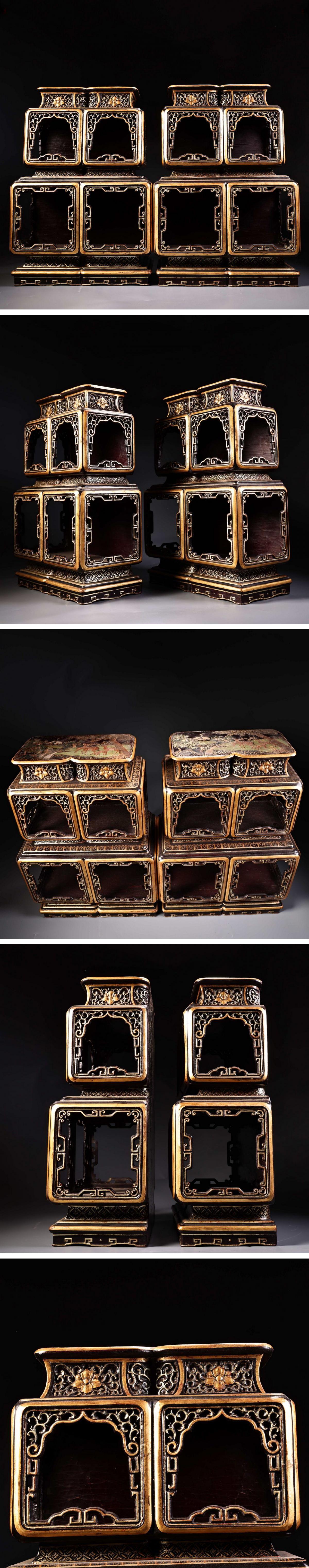 【清】某有名オークション購入 清時代 木胎漆塗 金蒔絵多寶閣一双 材質保証 古置物 古擺件 古美術 時代コレクション7L10-TE15
