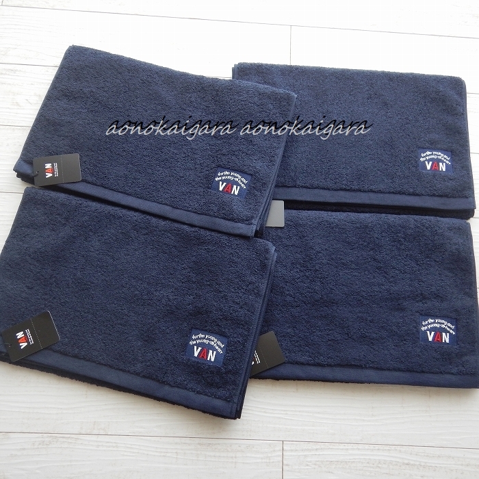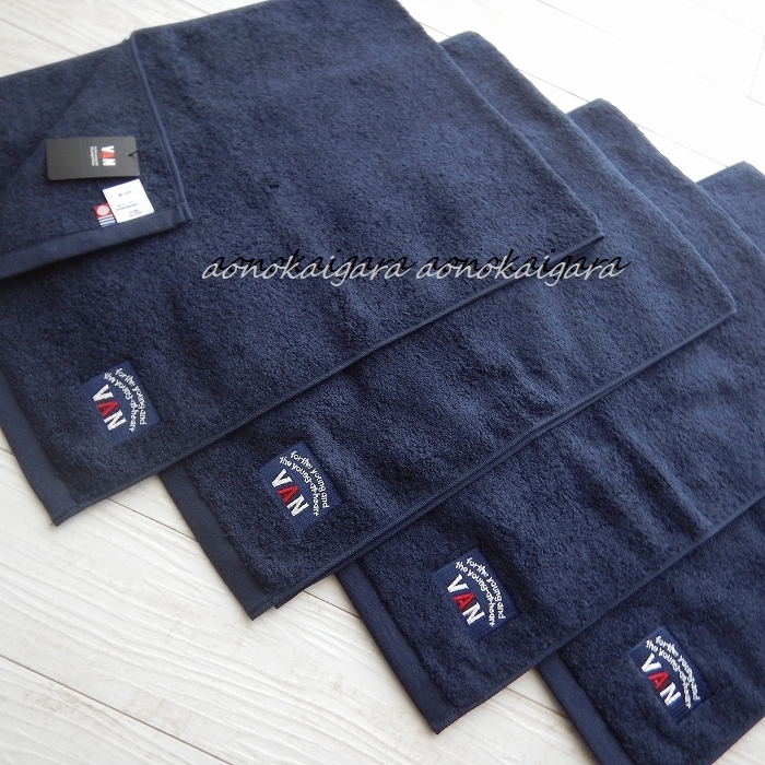 新品■今治タオル■VAN JAC■上質■厚手■しっかり■ふかふか■フェイスタオル4枚■ネイビー系