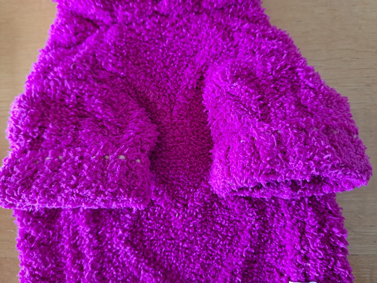 2.袖が長いので折り返し縫ってカスタマイズしています(写真4ご参照=縫った糸が見えます)。