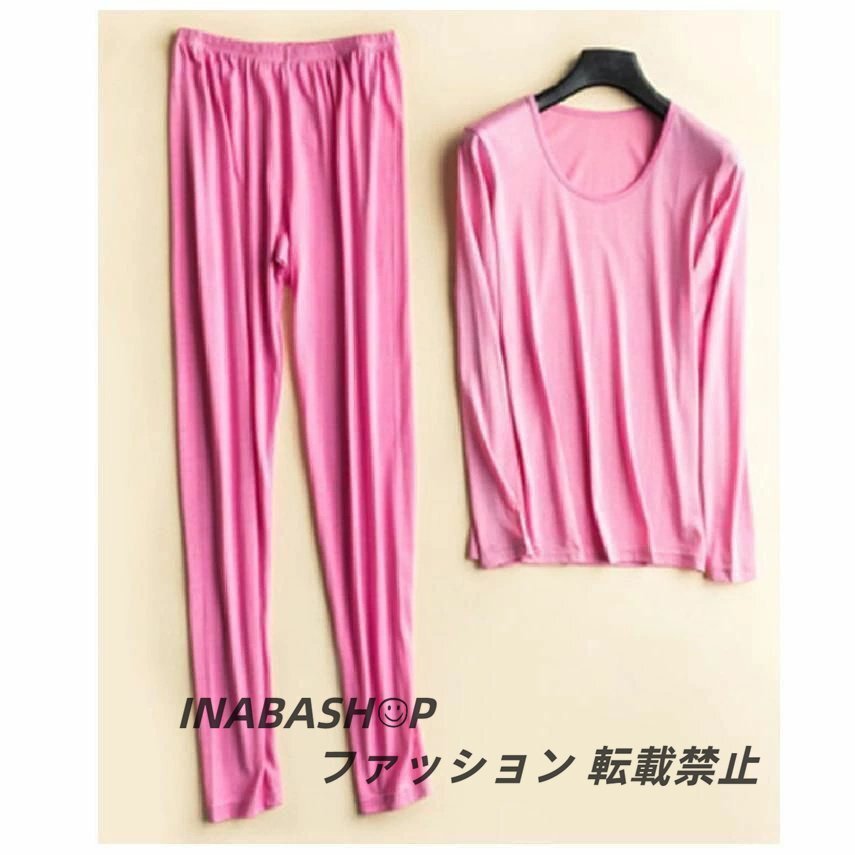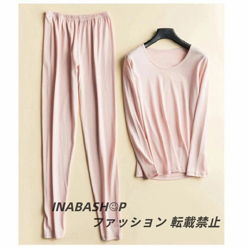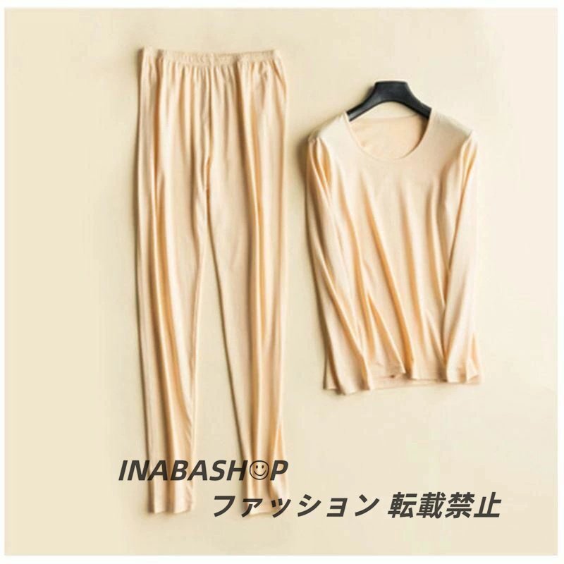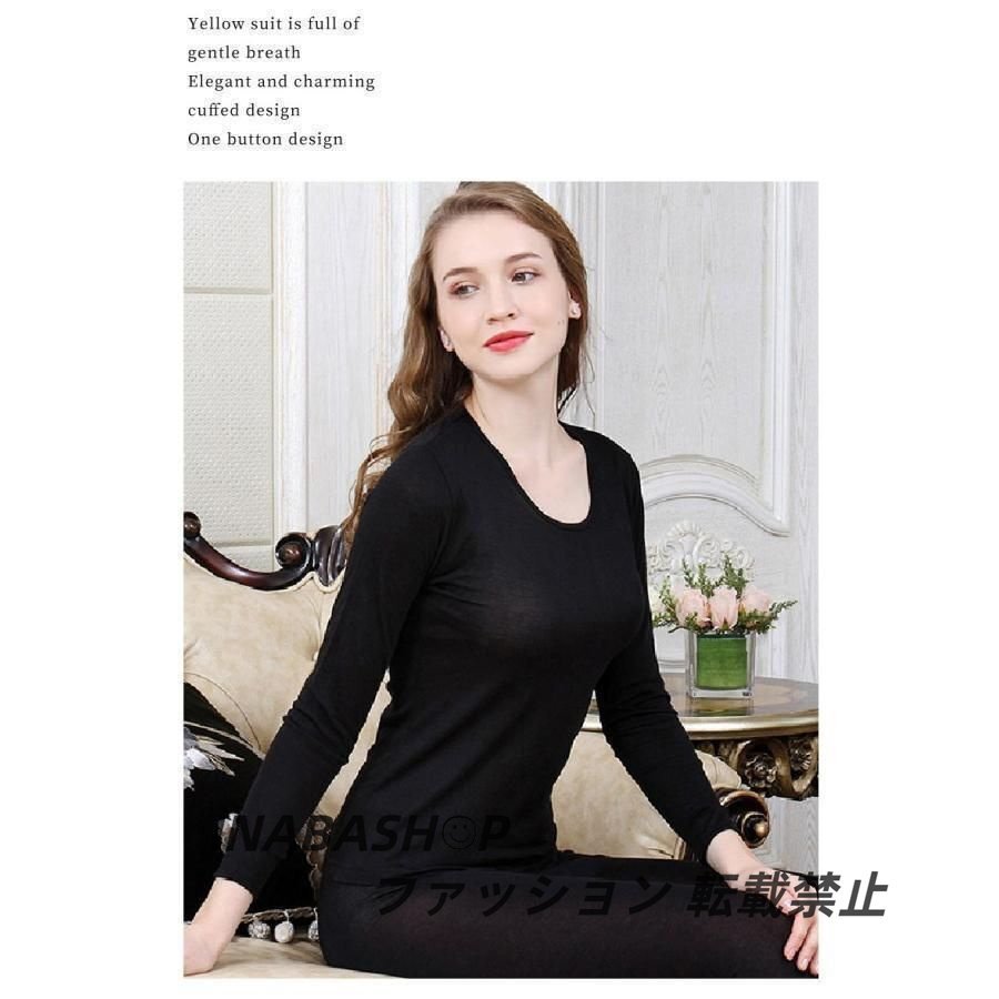 シルク インナーセット レディース 秋冬 長袖 10分丈 ルームウェア ナイトウェア 上下セット 部屋着 薄手 伸縮性 ゆったり 無地