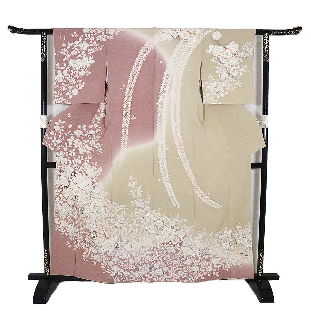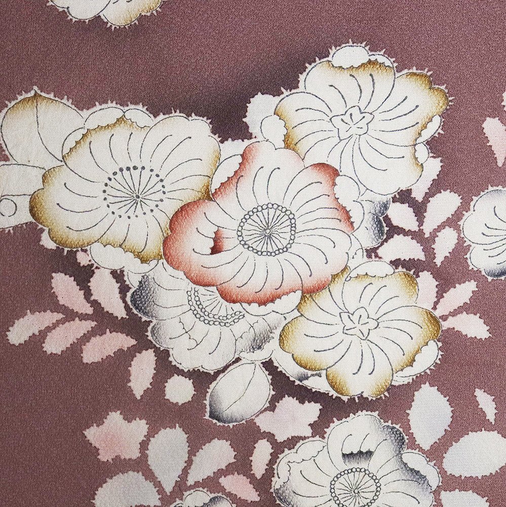 地色は和色大辞典より浅蘇芳色・空五倍子色・ に近いと思います。 裄丈が短めです。 この訪問着は地色・柄はもちろんのこと 装飾などの細かい所にまでこだわっています。 模様も上品で、 照明や太陽の光にあたると、とても豪華にみえます。 とても上品な訪問着です。 生地の状態は良いと思います。 目立ったシミ汚れはないと思います。 美品です。 このままお召ください。 |