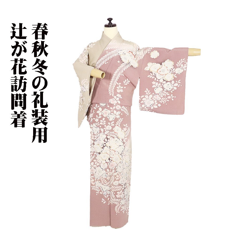 | 商品 | 辻が花訪問着 袷 丹後縮緬地 薄赤紫(浅蘇芳色)・薄緑(空五倍子色)・暈し地 絞り・辻が花 166 広襟 |