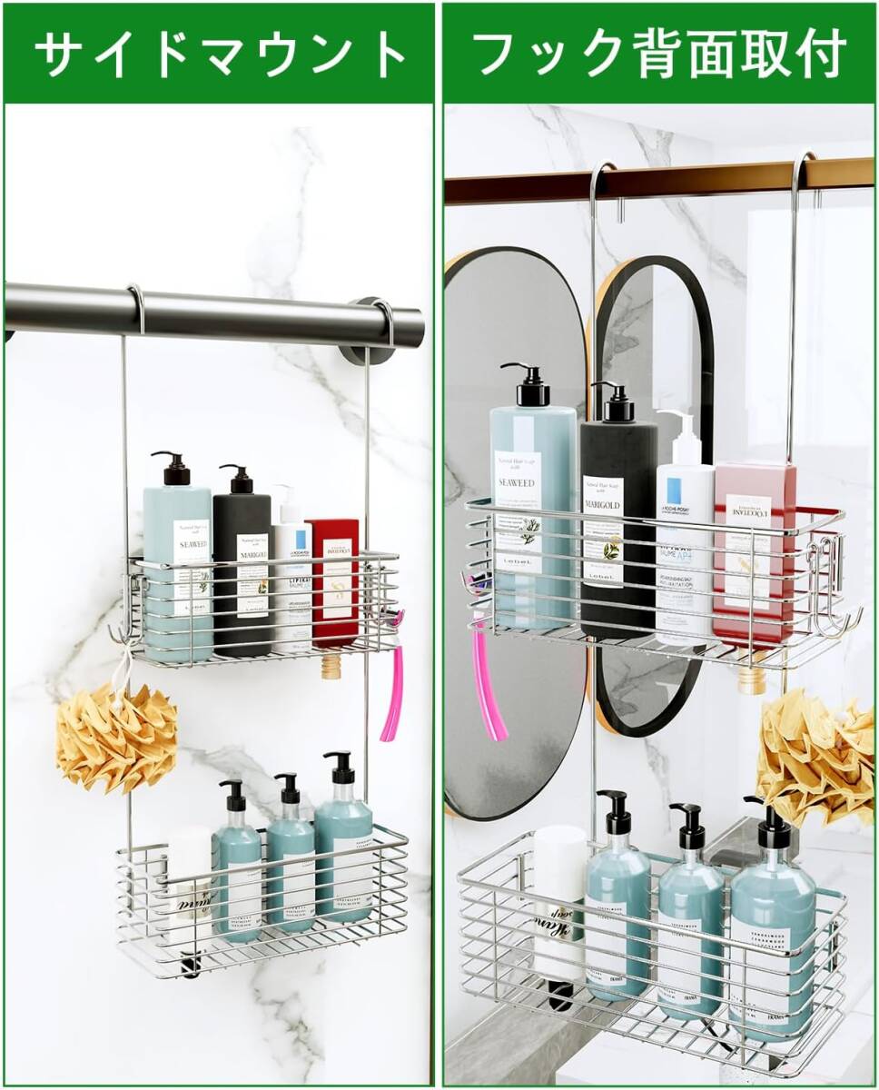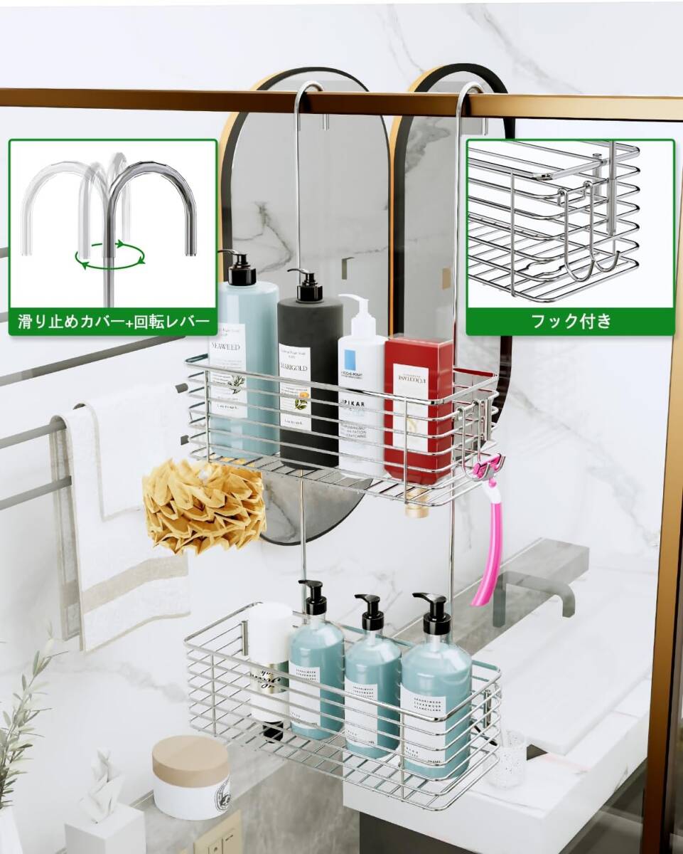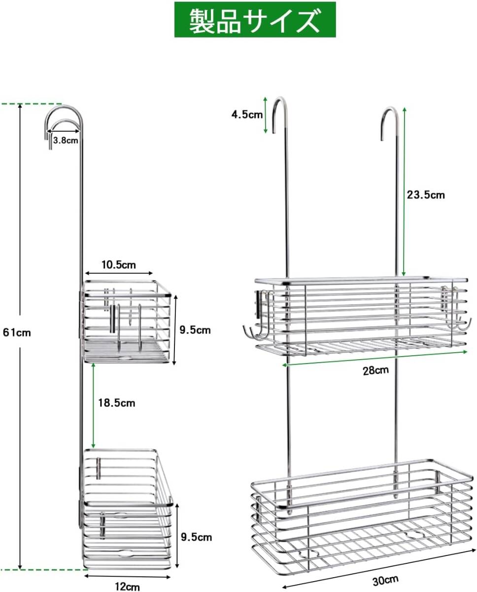 二重浴室ラック 浴室バスケット ステンレスシャワーラック シャンプーラックサスペンション式 収納ラック 収納バスケット