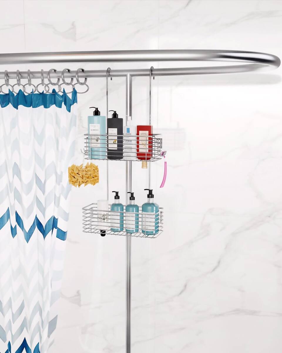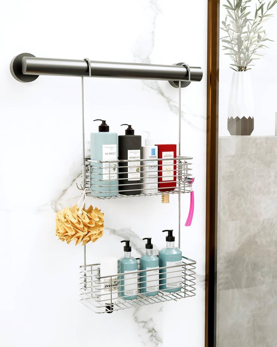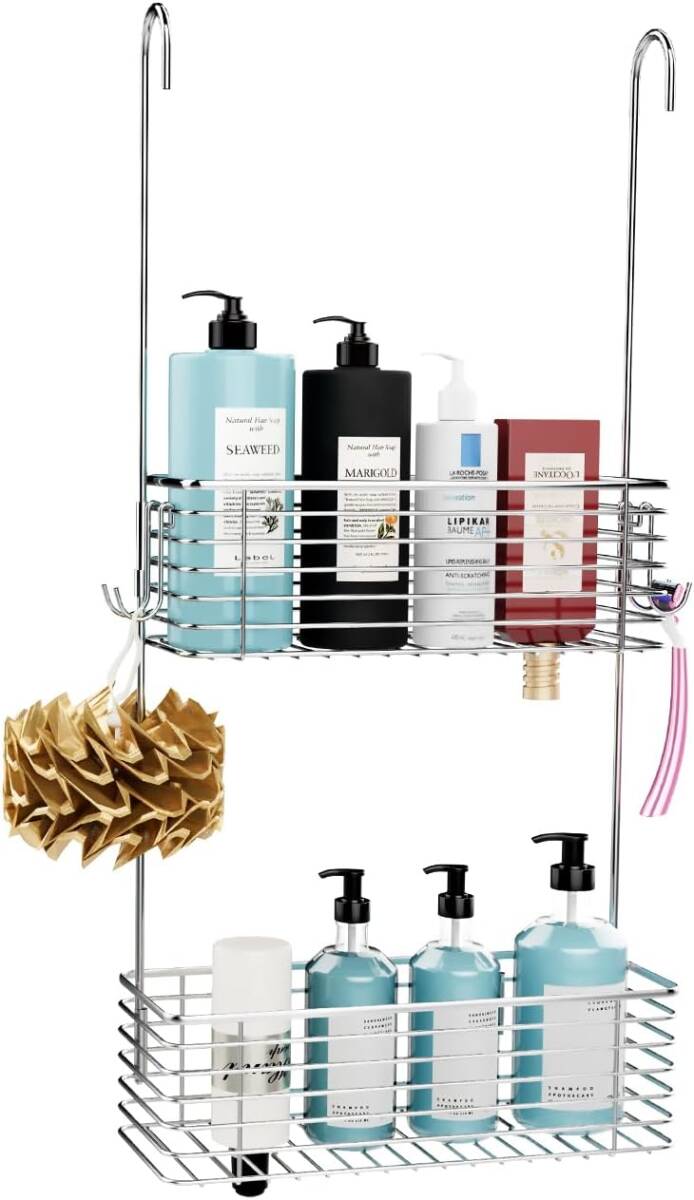 二重浴室ラック 浴室バスケット ステンレスシャワーラック シャンプーラックサスペンション式 収納ラック 収納バスケット