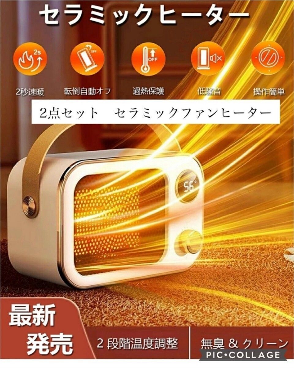 お得な2点セット セラミックファンヒーター2秒速暖 暖房 省エネ2段階温度調整 転倒自動オフ 安心安全のPSE認証