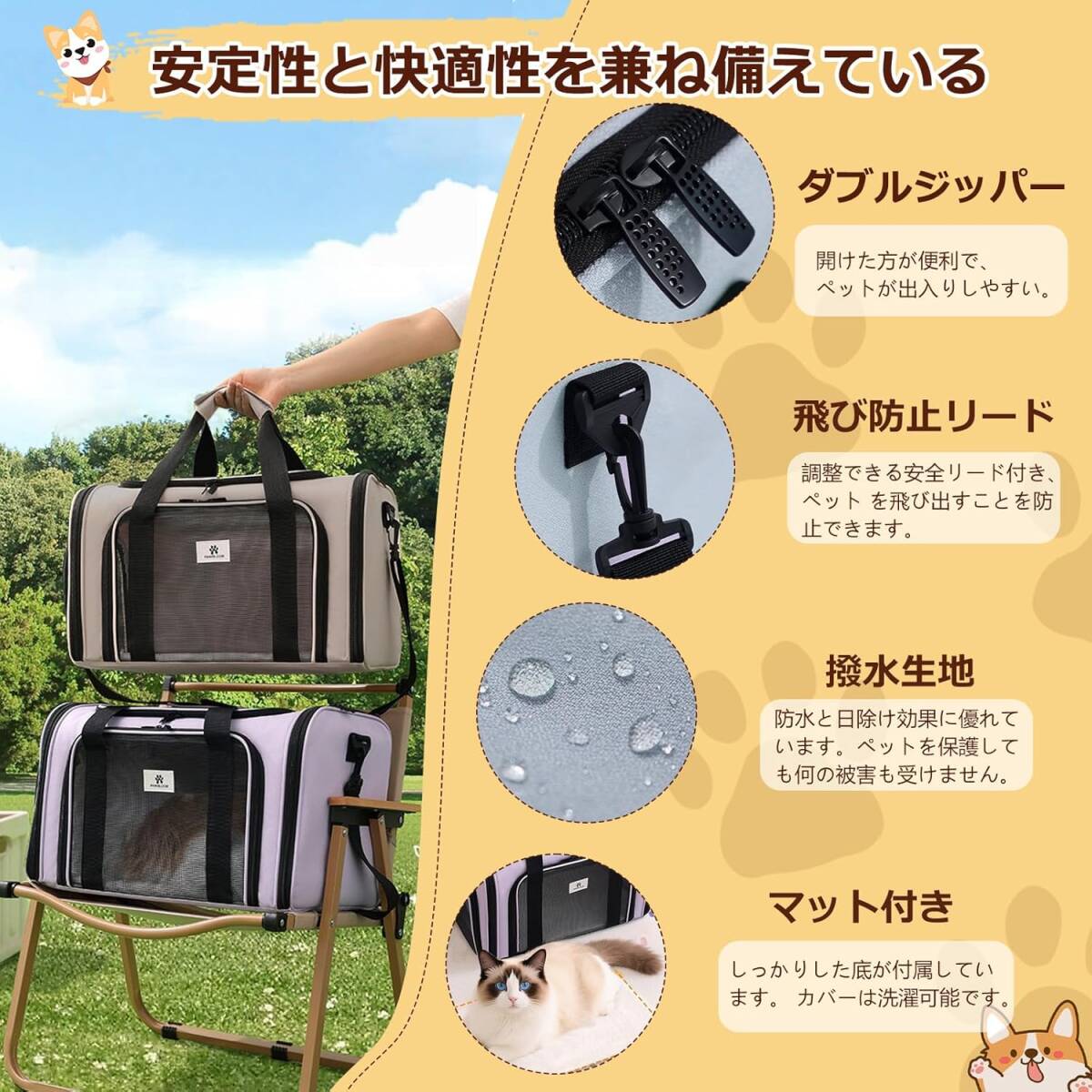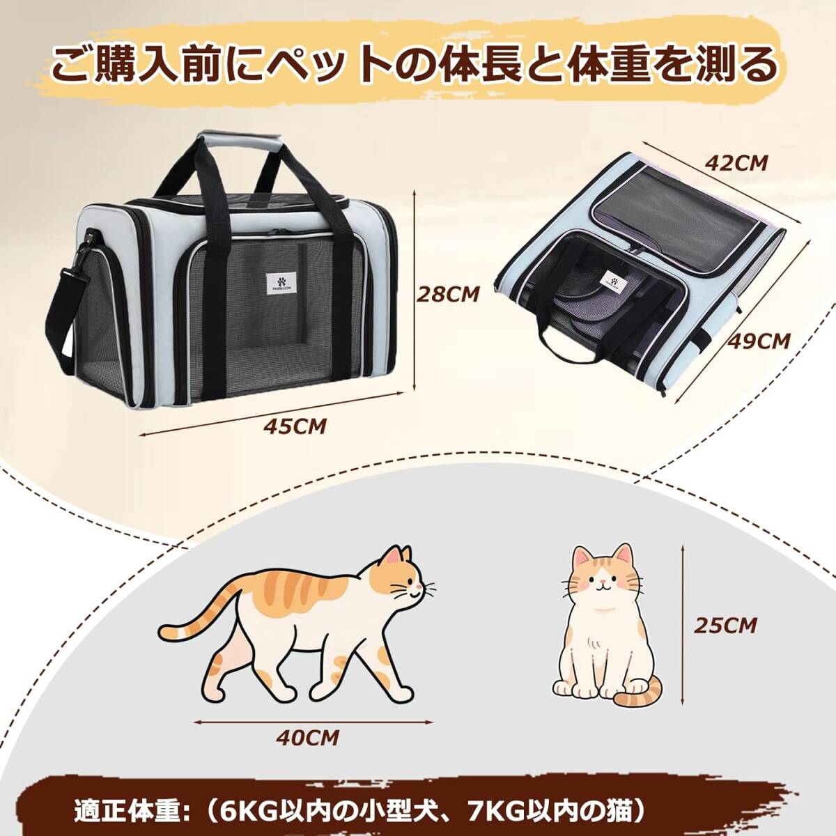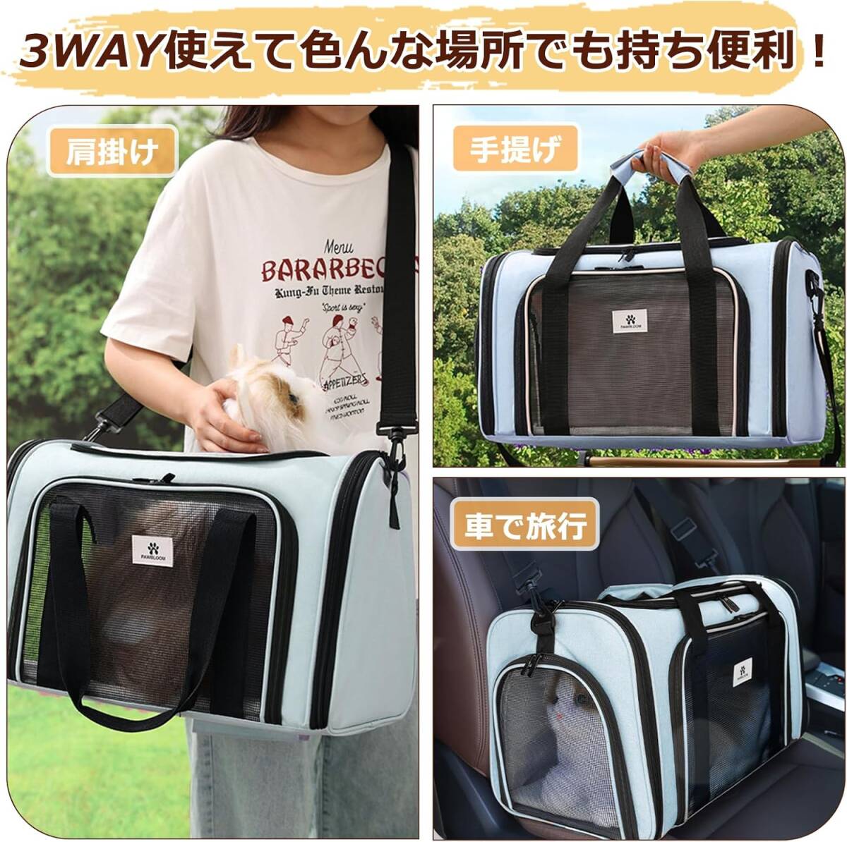 • 【軽い・丈夫・お出かけ便利】ハンドバッグは折りたたんでスペースをとらずに保管できます。簡単かつ迅速に設置できるので、旅行、通院、緊急避難に非常に適しています。ハンドルと調節可能なショルダーストラップで、持ち運びに便利な方法を選択し、ストレスを軽減できます。ペット用バックパックは、肩掛け、手提げ、フライト、スーツケース用、ドライブボックス、さまざまな方法で使用できます。