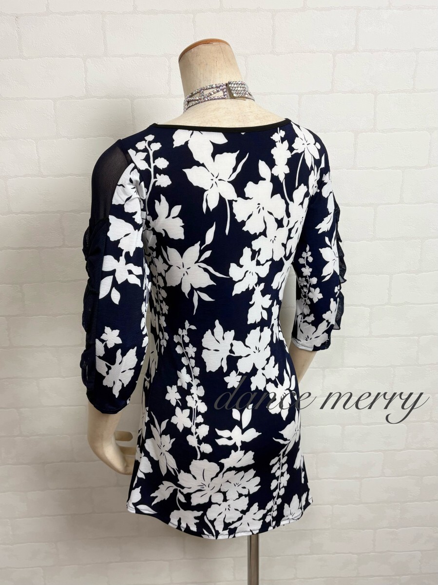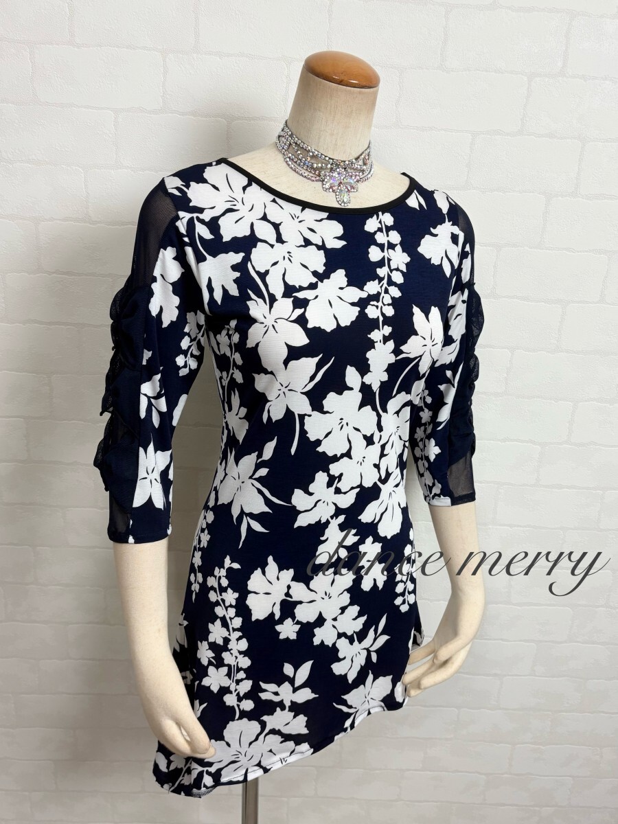 肌ざわりの良いストレッチ素材、メッシュを使用した社交ダンス チュニックです。