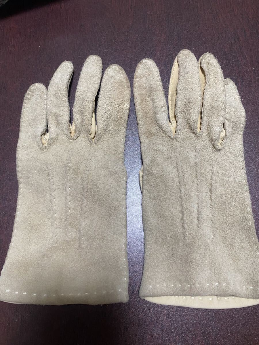 スエード素材のベージュレディース手袋