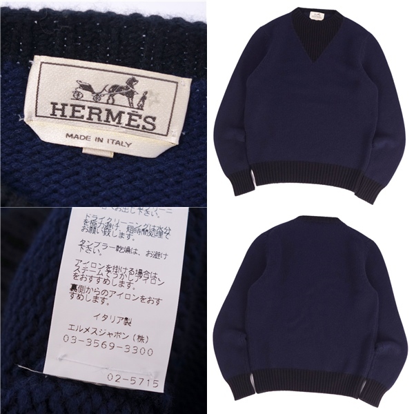 | 極美品 エルメス HERMES ニット セーター ロングスリーブ 長袖 カシミヤ コットン トップス メンズ S ネイビー |