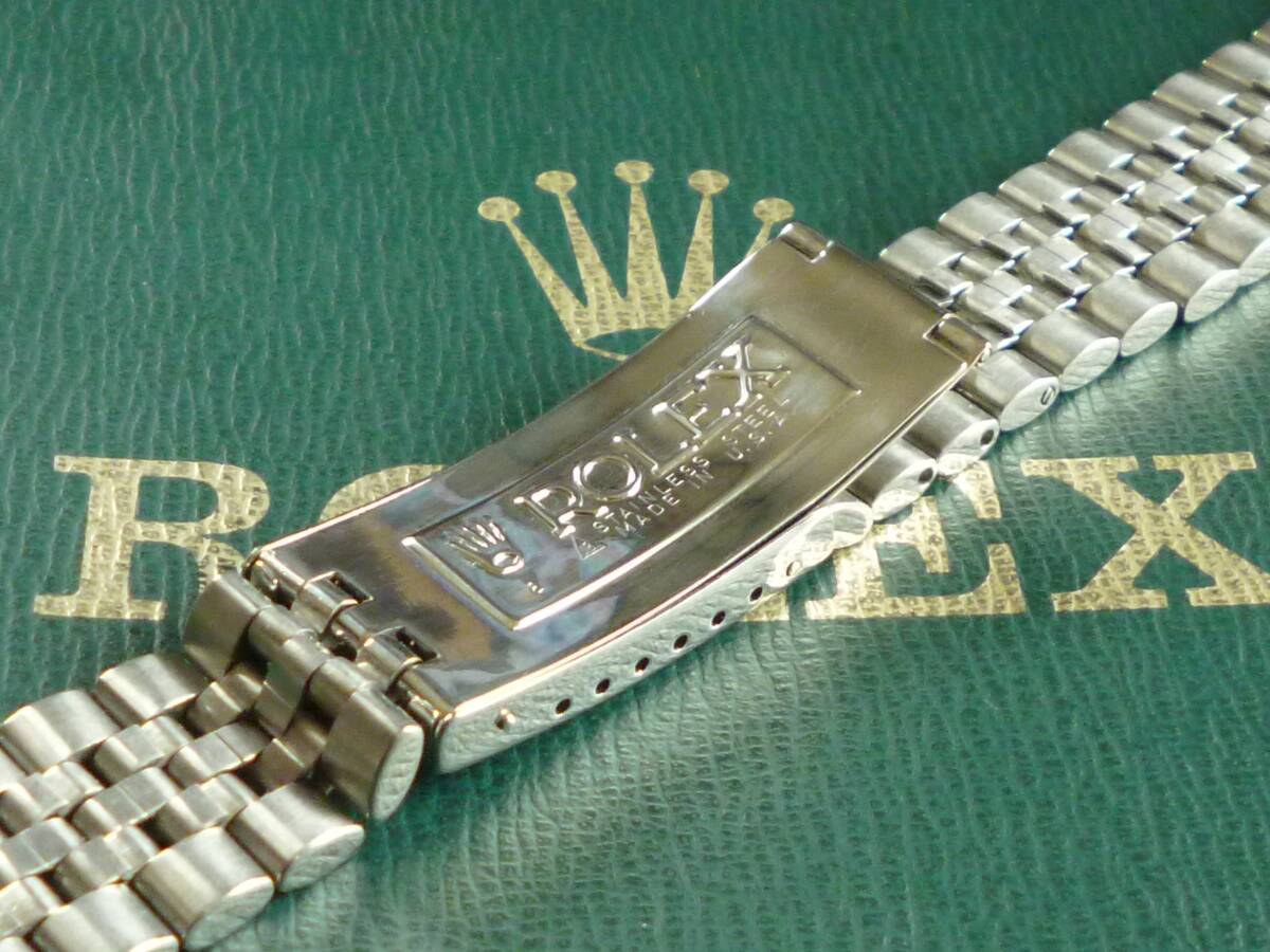 1970年代のヴィンテージのロレックス純正,ビックロゴ&ビッククラウン,ステンレススチール製,USAブレスレットです。フラッシュフィット幅は20mm,全体の長さは約17cm,コマ数は9個と13個の合計22個のフルコマです。クラスプ裏には本品の特徴ともいえる「ROLEX」ビックロゴと,「JB STAINLESS STEEL MADE IN U.S.A.」の文字が刻印されています。ロレックスのブレスレットはスイス製がほとんどですが,本品は短い期間,アメリカで製造されていた希少なブレスレットです。ここ数年に渡るロレックス製品の価格改定や新モデル発表以降,ヴィンテージロレックスの価格も驚くほど高騰してしまいました。2枚のクラスプのヒンジはきつく,閉じるとパチっとバックルに納まります。約50年前のヴィンテージのロレックス純正,ビックロゴ&ビッククラウン,ステンレススチール製,USAブレスレットです。お持ちのロレックスのブレスレットにいかがでしようか。お奨めの逸品です。