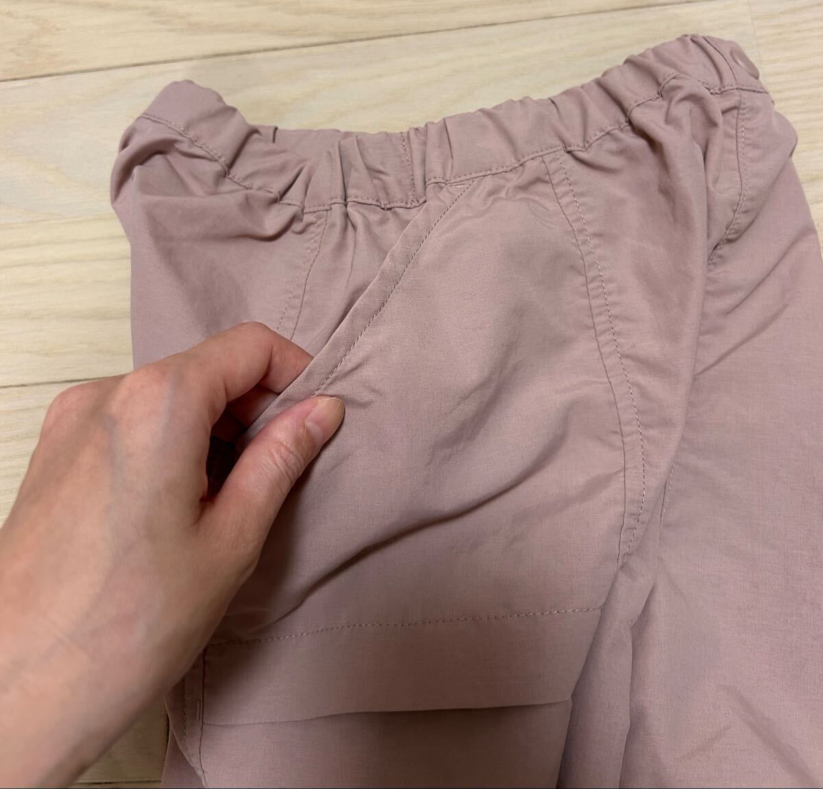 ・内側からゴムを引き出し、ボタンでウエスト調節ができる