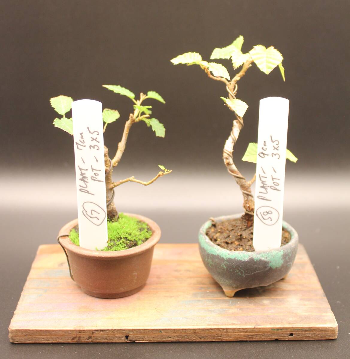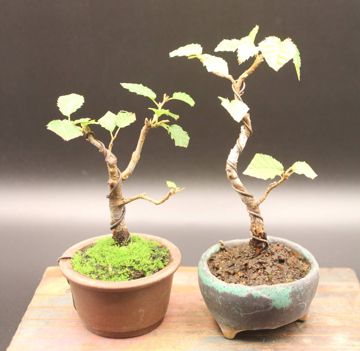 【ミニ盆栽 2鉢セット】アオハダ/クマシデ類(Carpinus japonica)|樹高 約7cm & 9cm|鉢サイズ 各3×5cm
