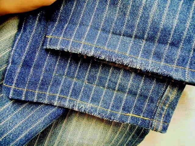裾上げのステッチ色が、[●明るめの黄色]で仕上げられています。
