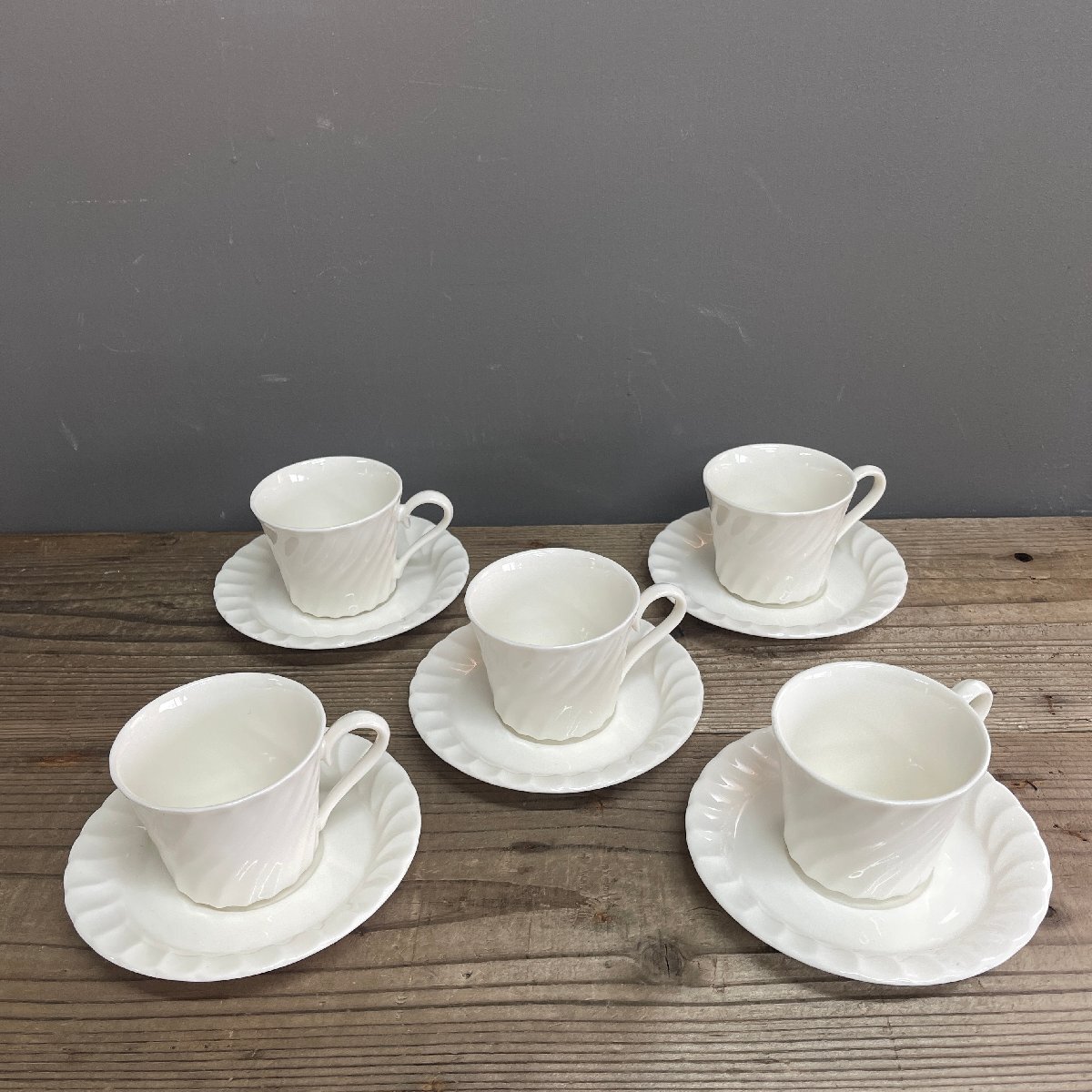 | 保管品 未使用品 カップ&ソーサー コーヒーカップ 白磁 陶器 食器 スプーン付き 5客 |