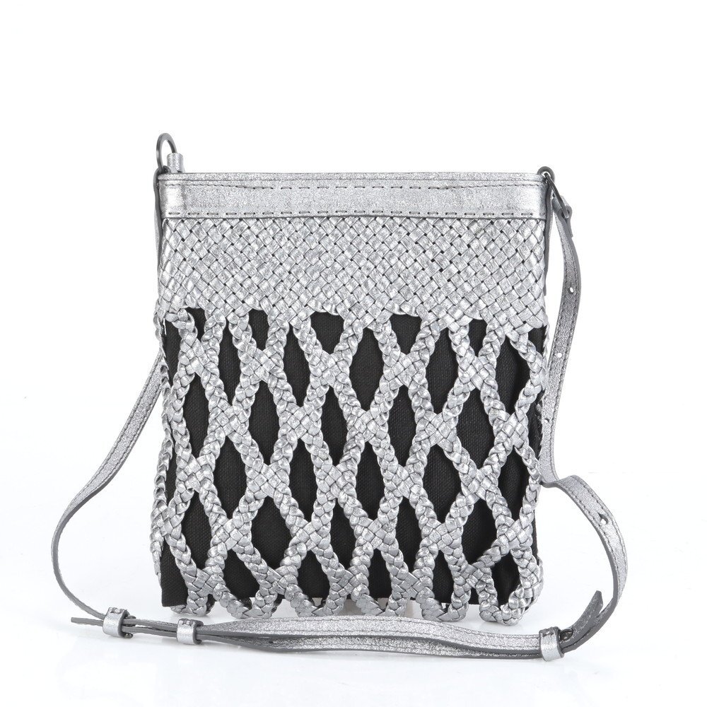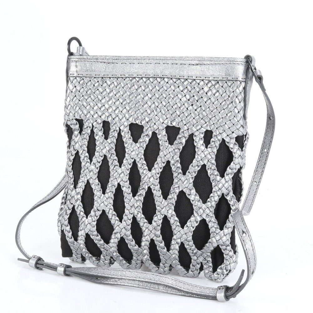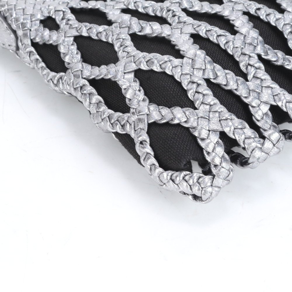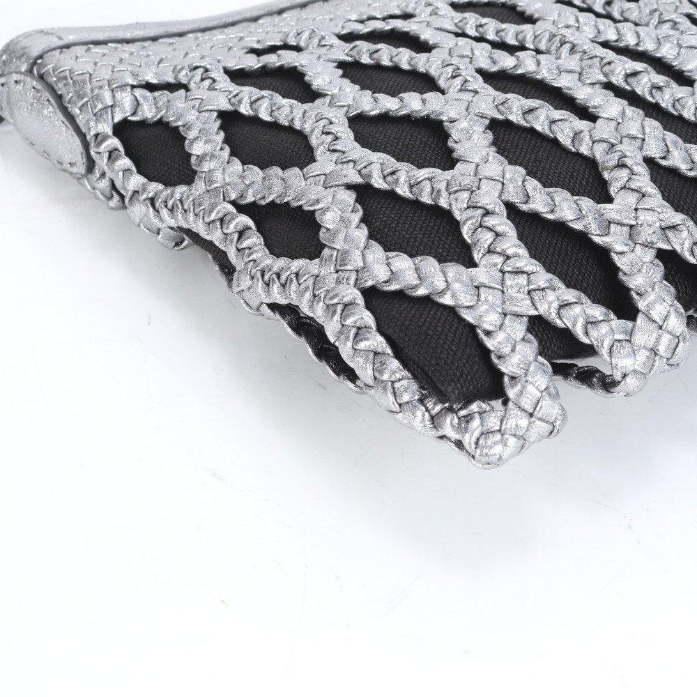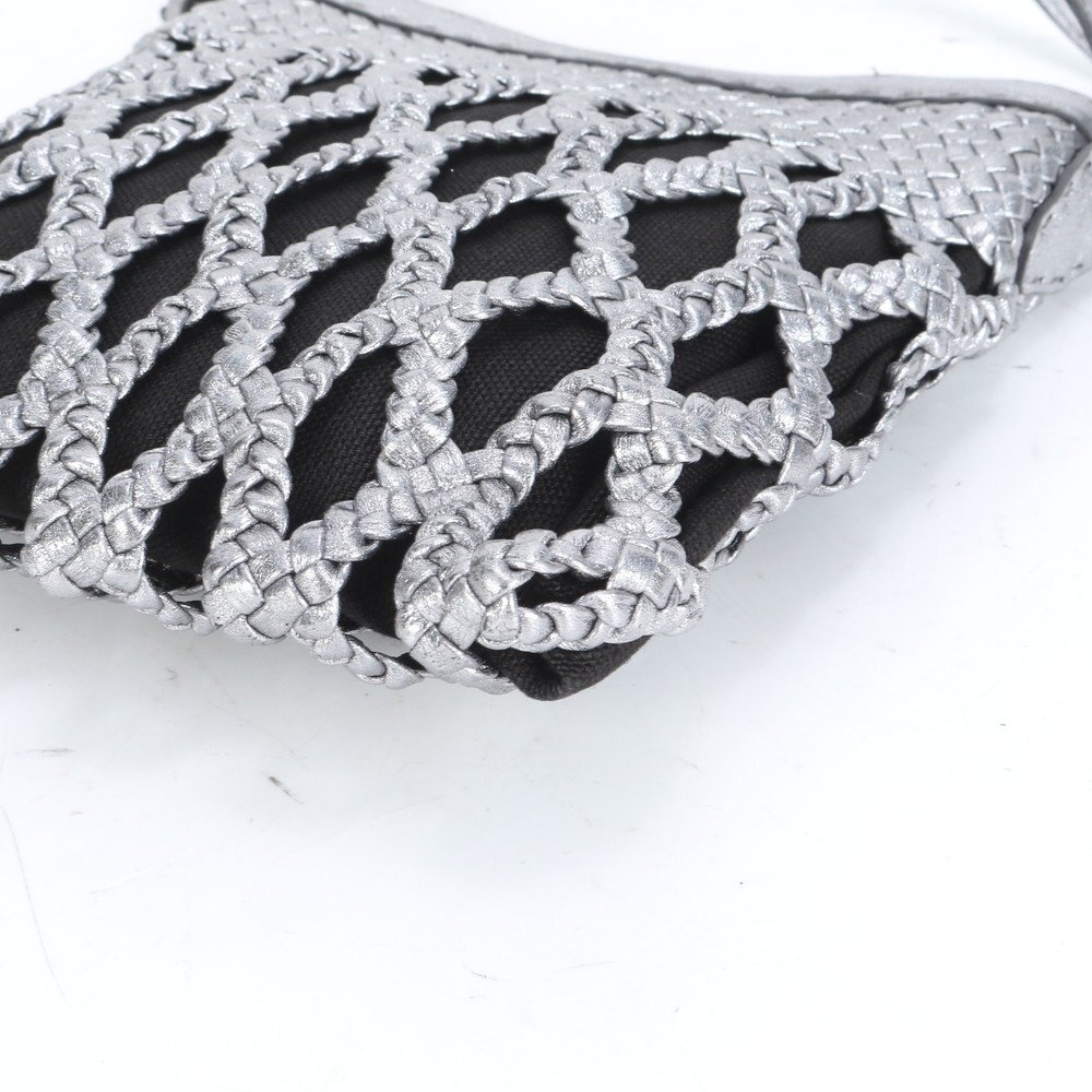 1円 美品 ファロルニ イタリア製 メッシュ 編み込み レザー ショルダーバッグ 斜め掛け クロスボディ ハンド トート レディース RRE CM8-7