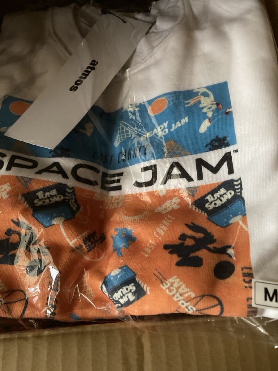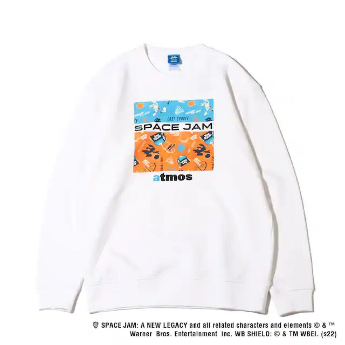 SPACE JAM × atmos コラボスウェットです。正規店購入、新品未使用、サイズM、ホワイト、品番:atm-22-sj006
