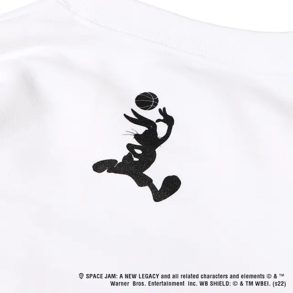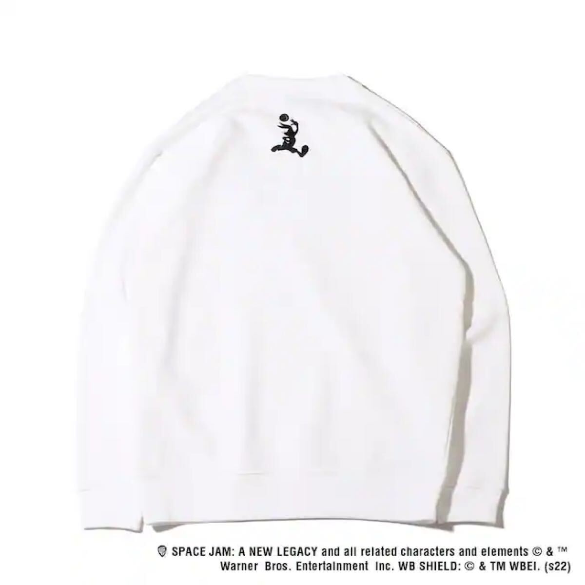 とのコラボレーションスウェットシャツ。フロントはバックス・バニーやスペース・ジャムのモチーフでデザイン、バック首元にはバックス・バニーのシルエットをプリントしています。