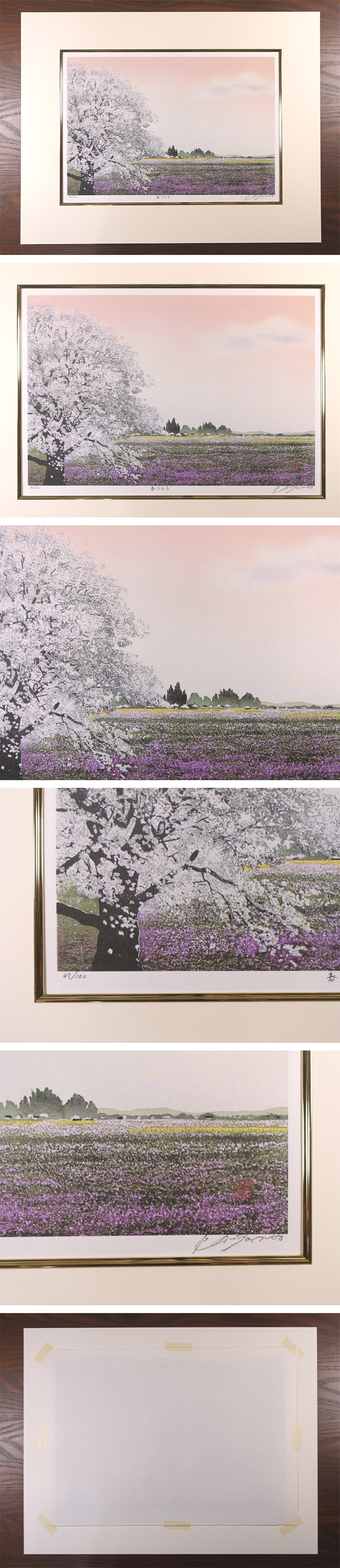 木版画界の名匠 宮本秋風 木版画 季節の風景 春 春うらら (ジクレー版画) 限定品 面金マット 作者直筆サイン 保証品