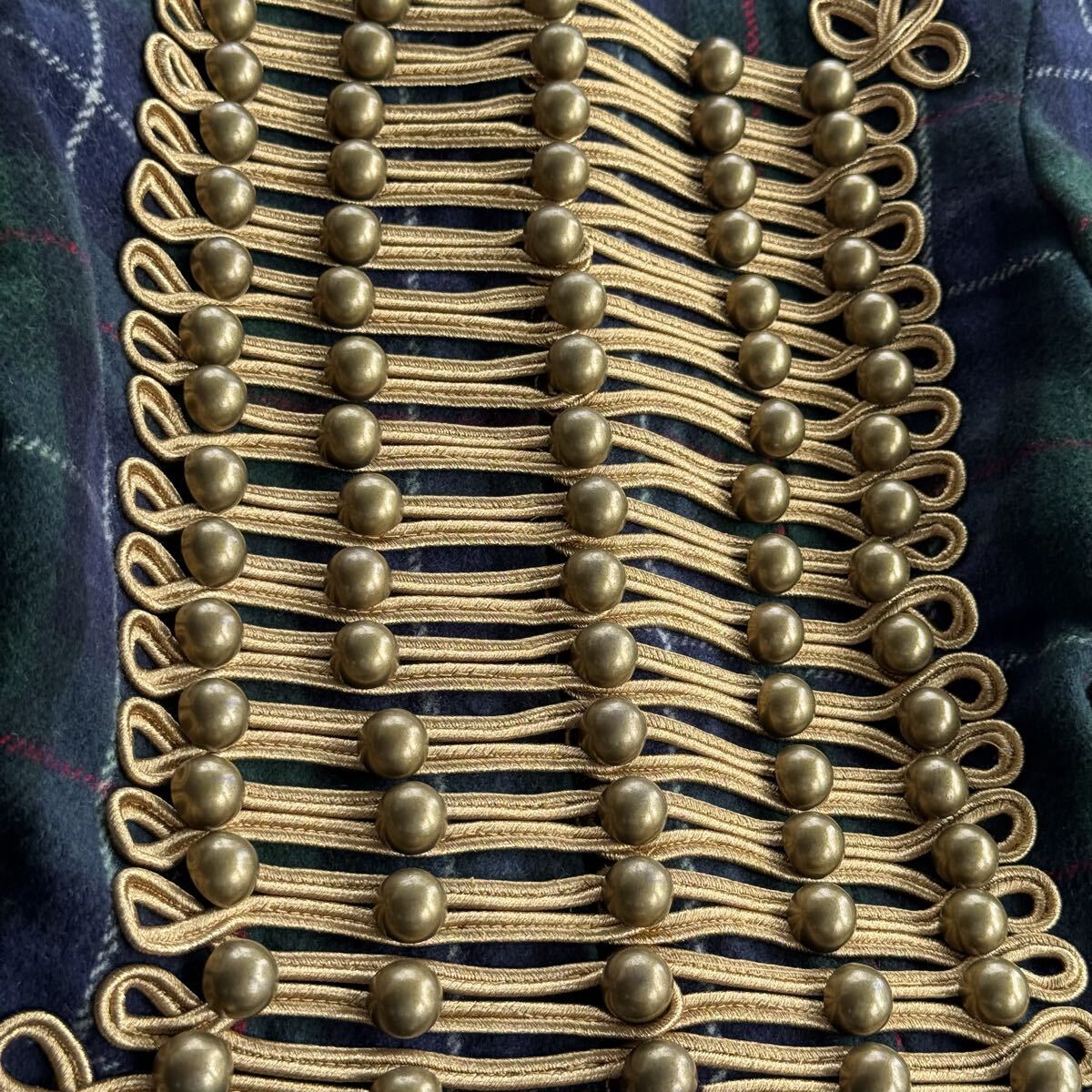 真鍮仕上げのメタルボタンによる前開き仕様。