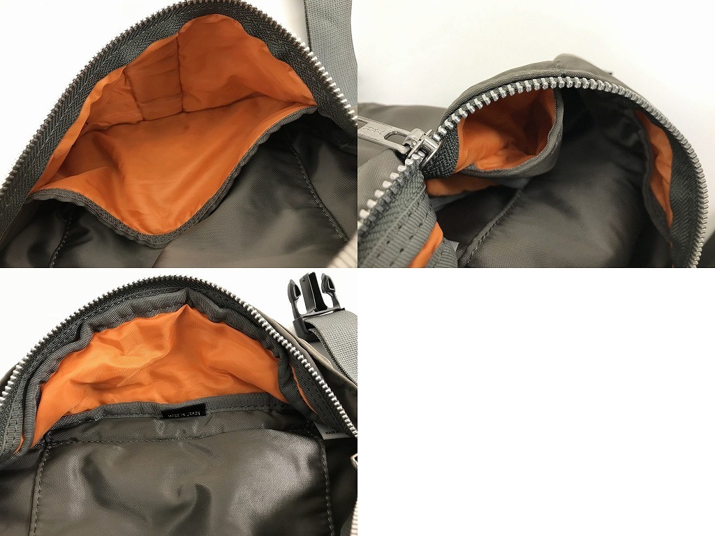 商品説明PORTER カジュアルでスタイリッシュなお洒落の魅力 TANKERタンカー ボディバッグ ウエストポーチ ヒップバッグ 鞄 でございます。  「TANKER」シリーズは、アメリカ空軍のフライトジャケット「MA-1」をモチーフに開発したオリジナル生地を採用しています。  ナイロンツイル(表面)+ポリエステル綿(中間層)+ナイロンタフタ(裏面)という3層構造の生地はとても軽く、ボンディング素材の柔らかな感触と裏面の鮮やかなレスキューオレンジが魅力です。